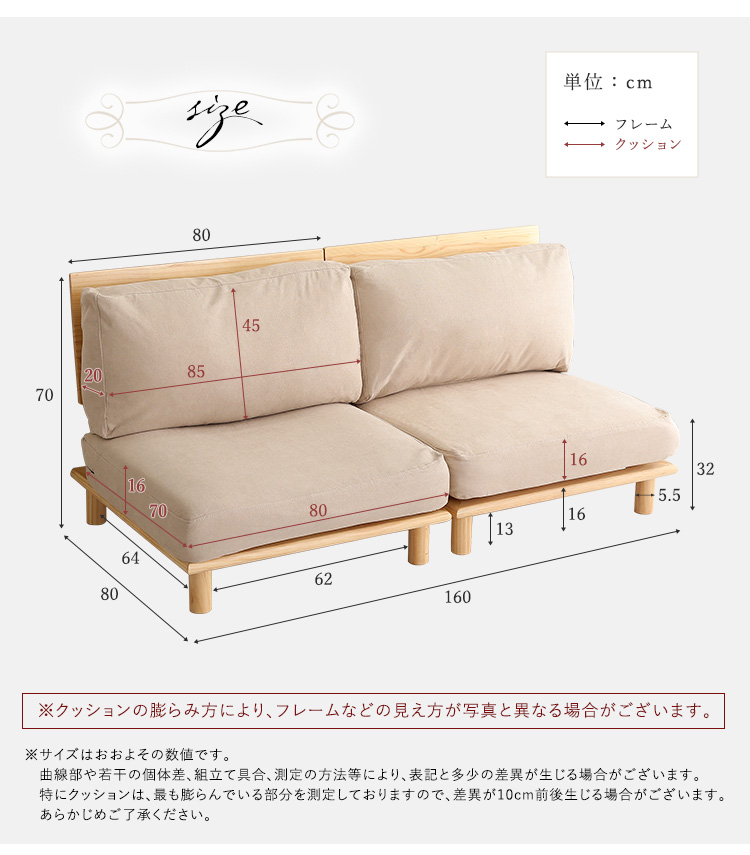 ファブリックソファ ローソファ 2人掛け おしゃれ