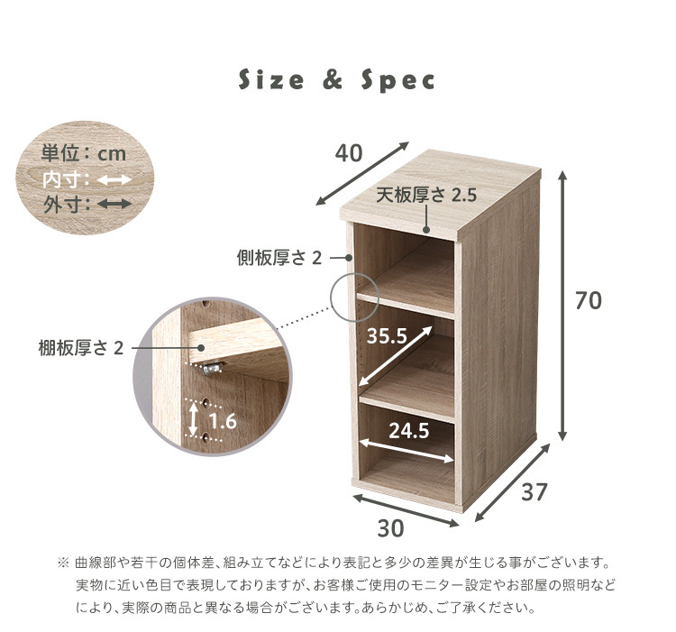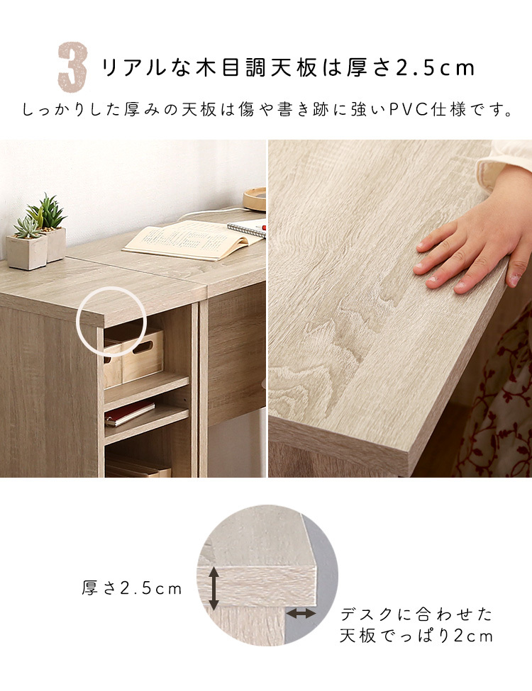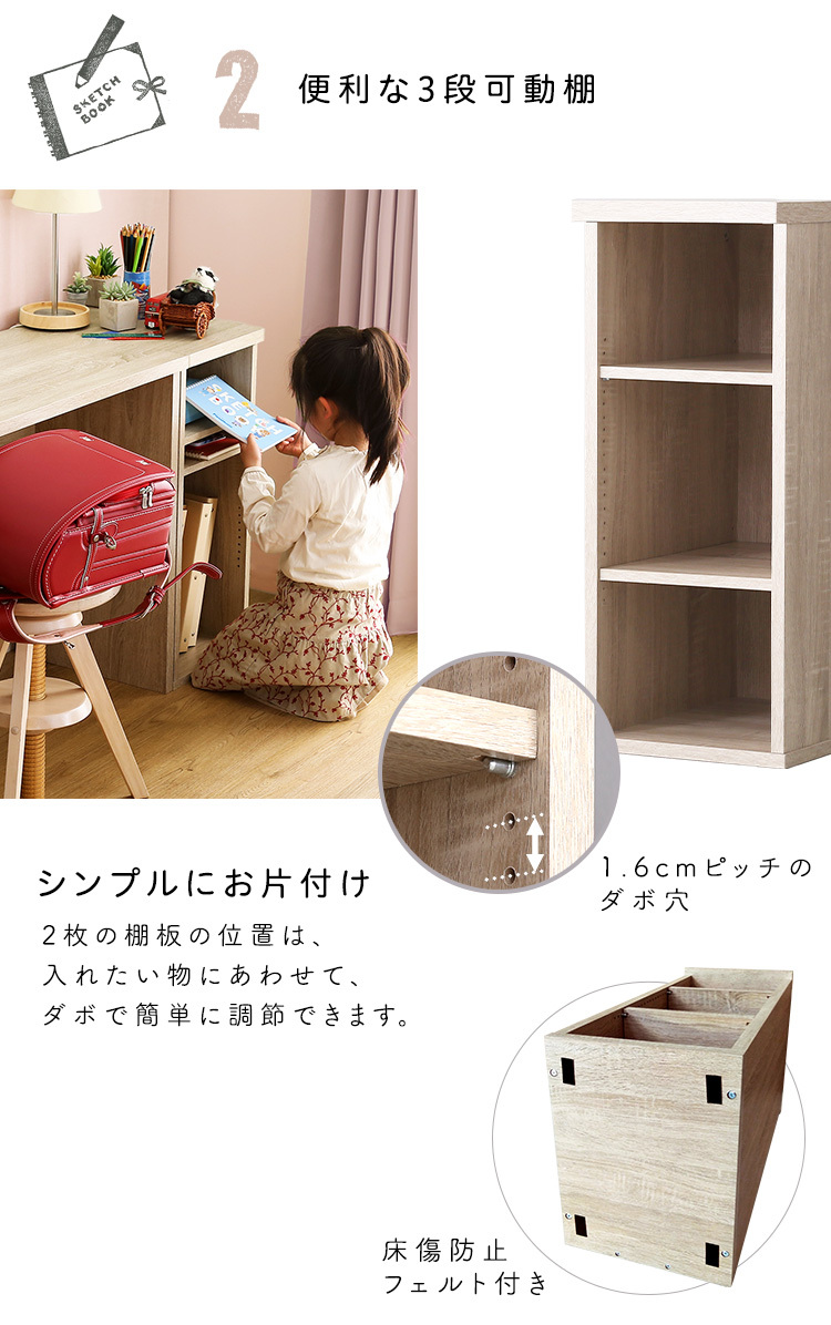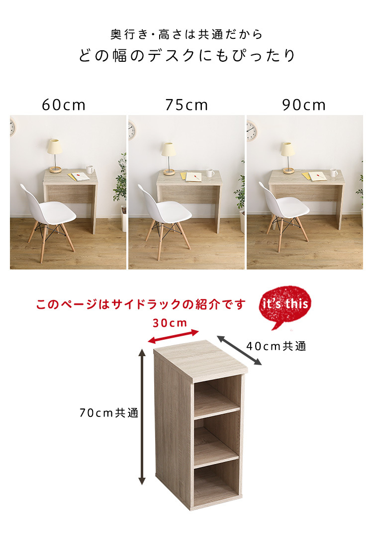 サイドラック デスク専用 30幅 木目調 3段可動棚