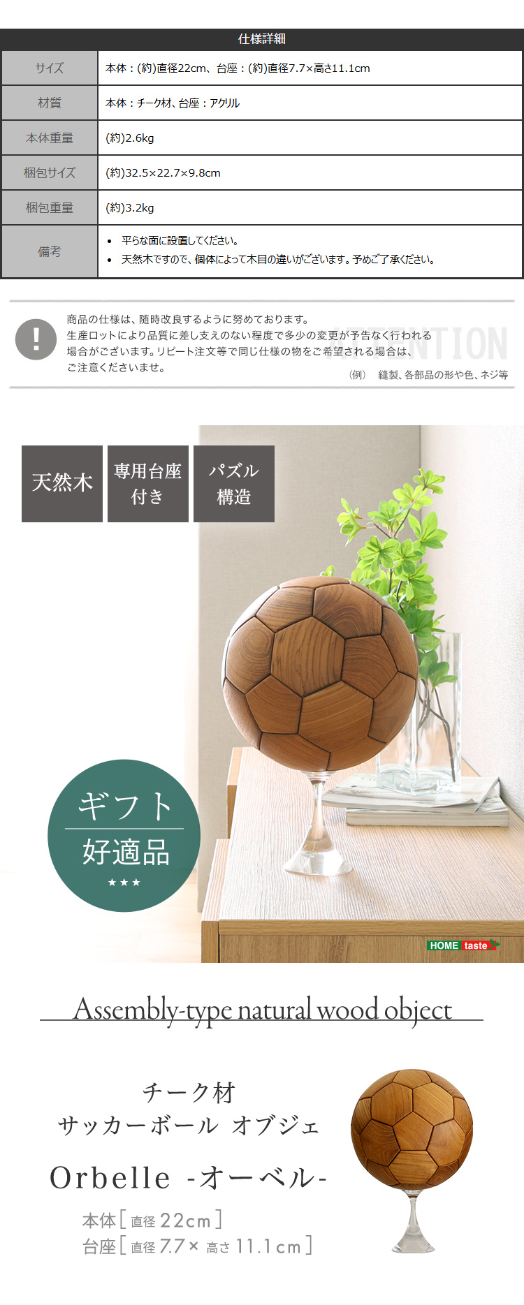 サッカーボール 木製 置物 オブジェ 雑貨 装飾