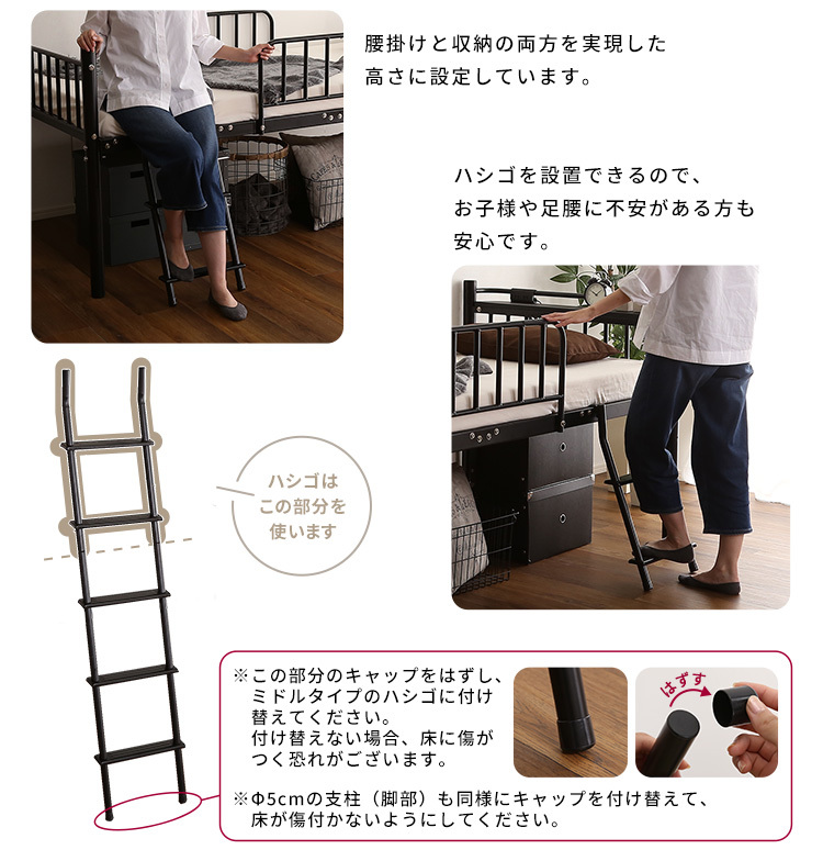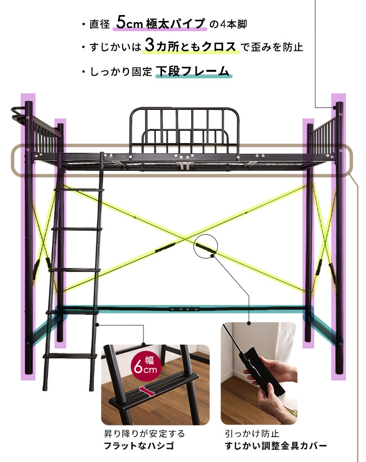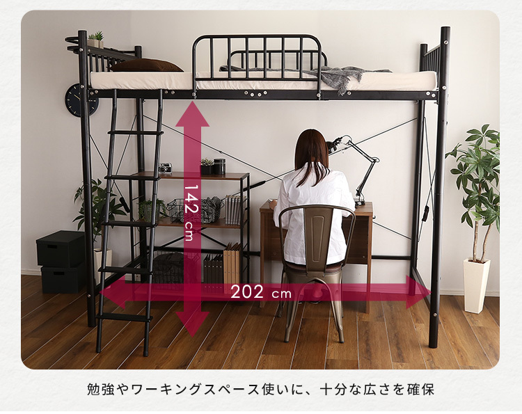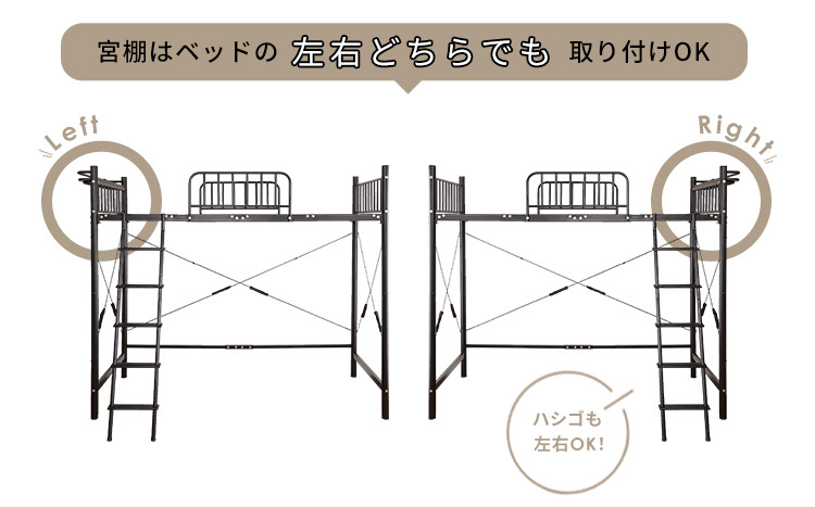 宮棚ロフトベッド シングルサイズ 収納 高さ調整 おしゃれ