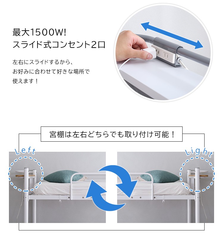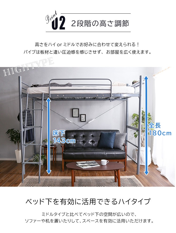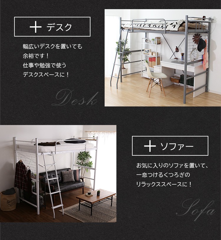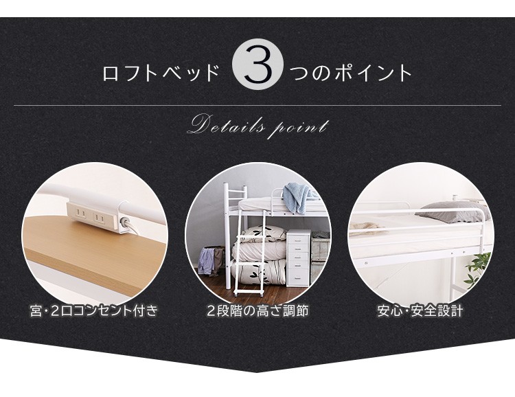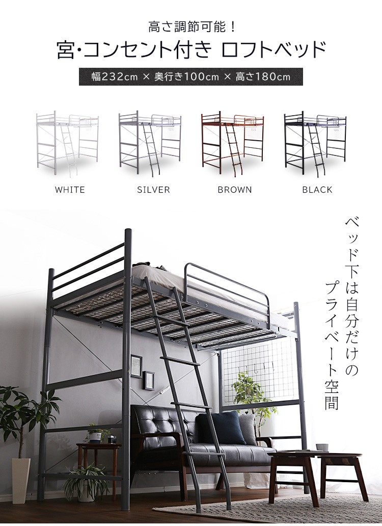インテリア ベッド ロフトベッド おしゃれ コンセント付き
