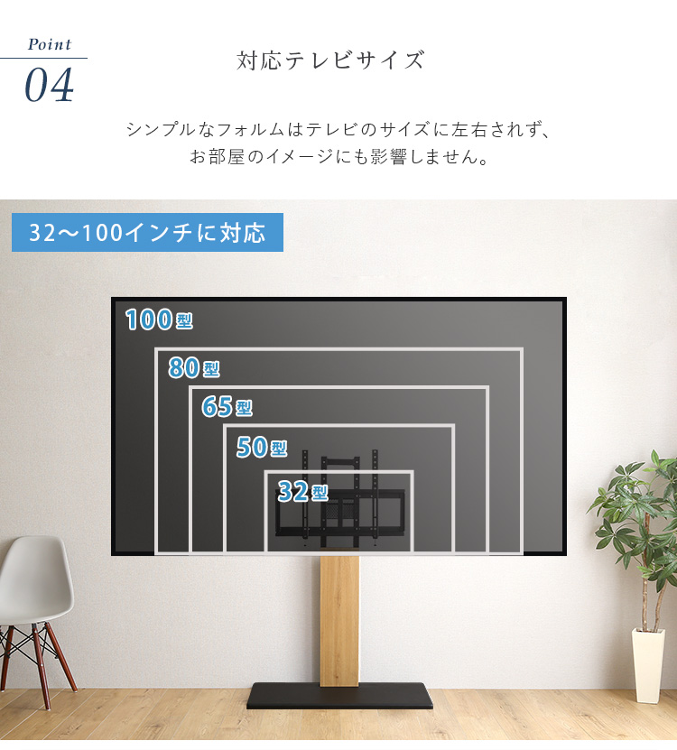 頑丈テレビスタンド 最大100インチ対応 高さ調整 おしゃれ