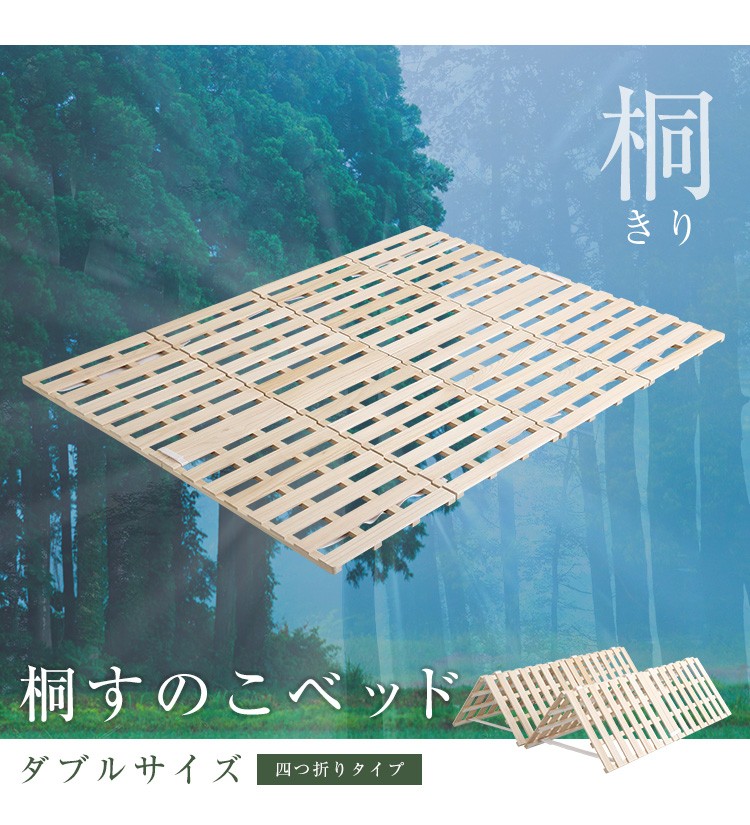 すのこベッド 4つ折り式 桐仕様(ダブル)【Sommeil-ソメイユ-】