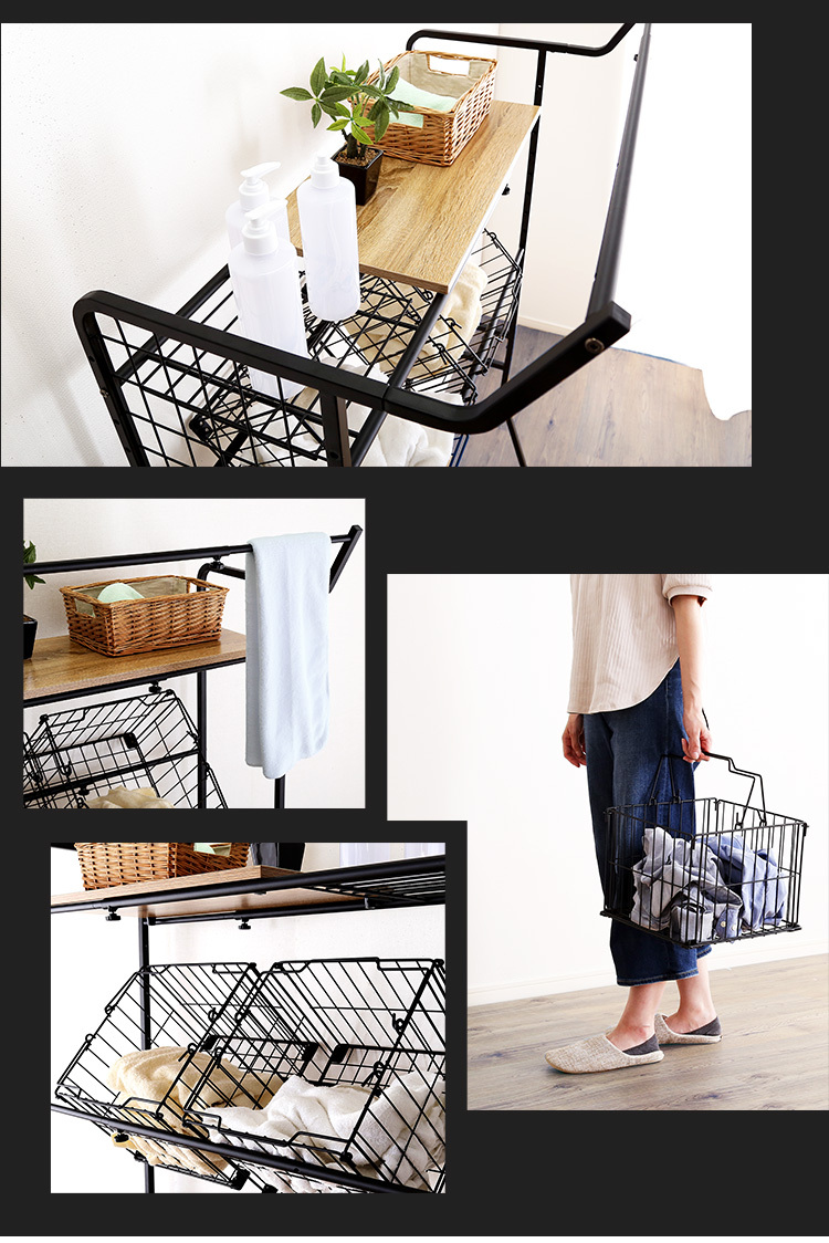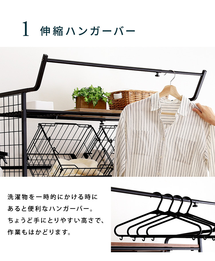 ヴィンテージ ランドリーラック 伸縮ハンガーバー 洗濯棚