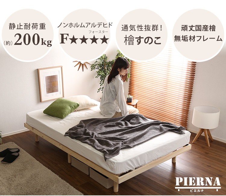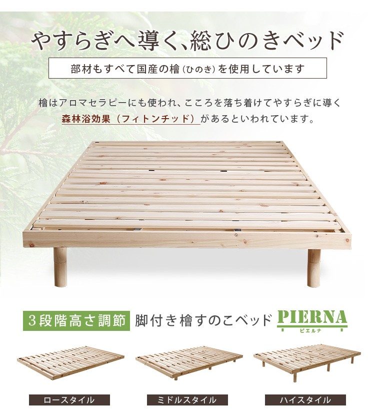 総檜脚付きすのこベッド(セミダブル) 【Pierna-ピエルナ-】