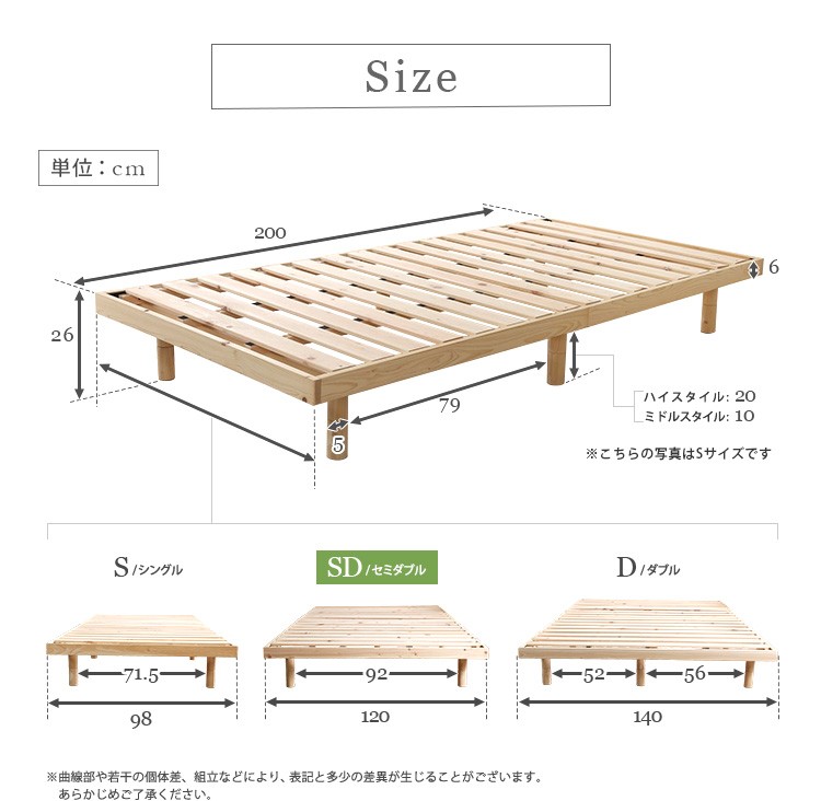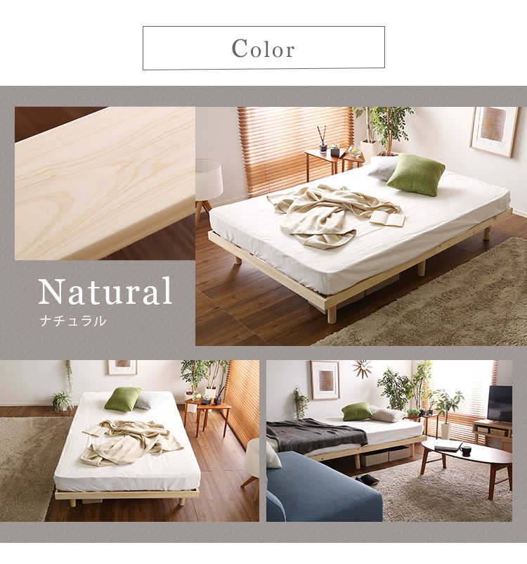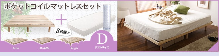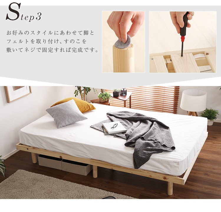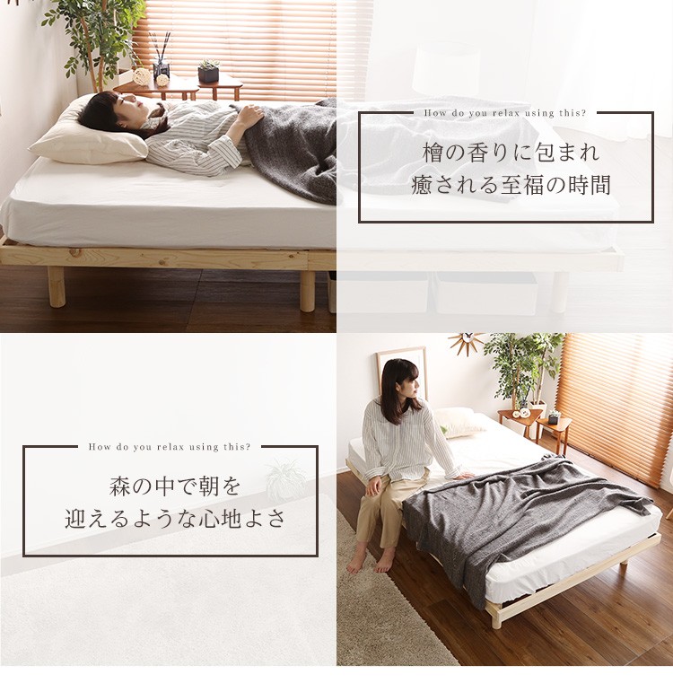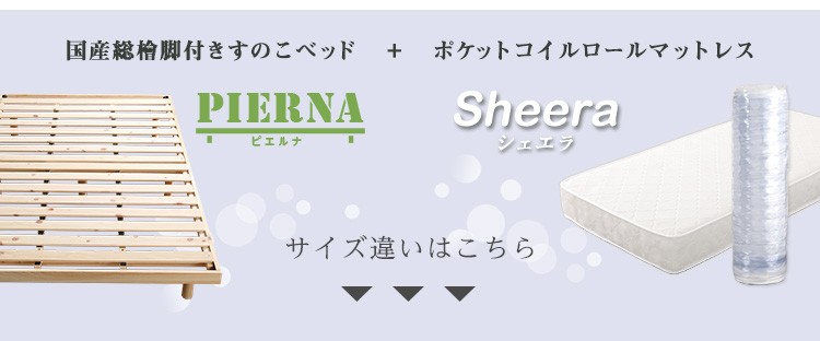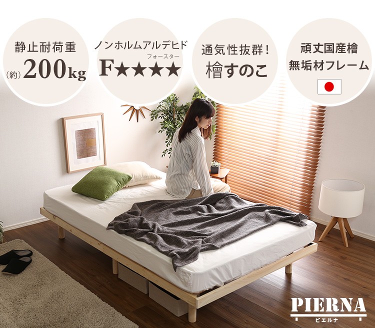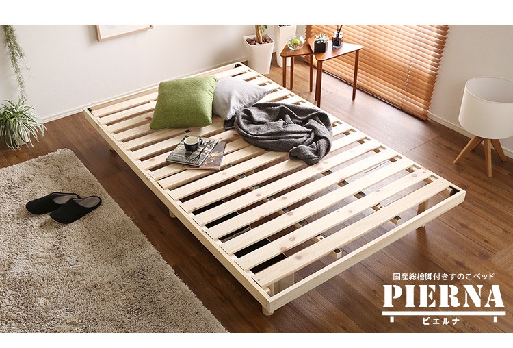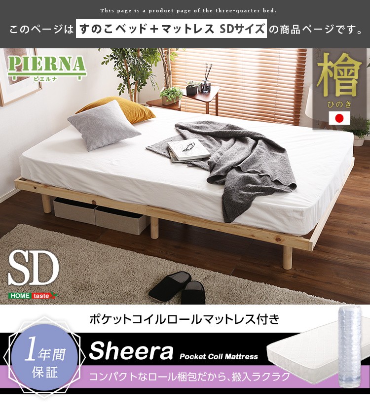 3段階高さ調節 国産総檜脚付きすのこベッド 【Pierna-ピエルナ-】(ポケットコイルロールマットレス付き) セミダブル