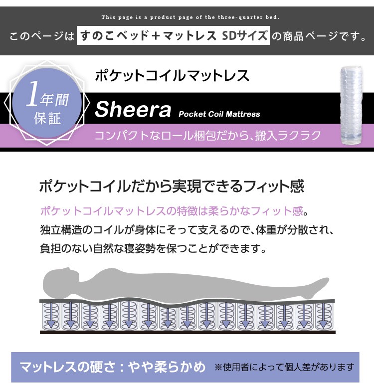 “3段階高さ調節 国産総檜脚付きすのこベッド 【Pierna-ピエルナ-】(ポケットコイルロールマットレス付き) セミダブル” の口コミを投稿します