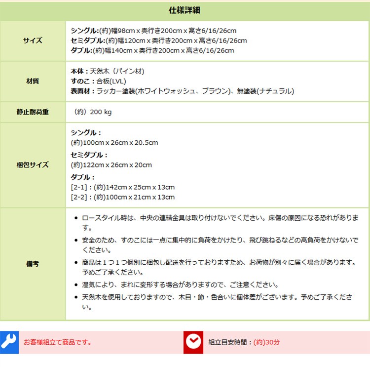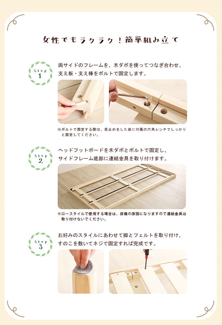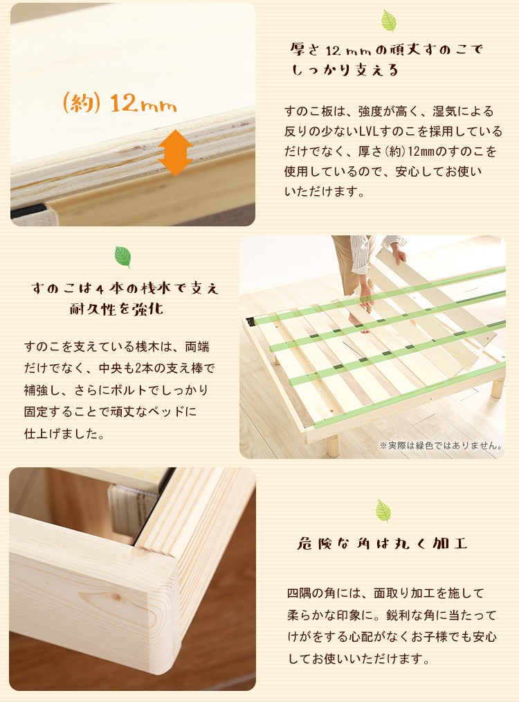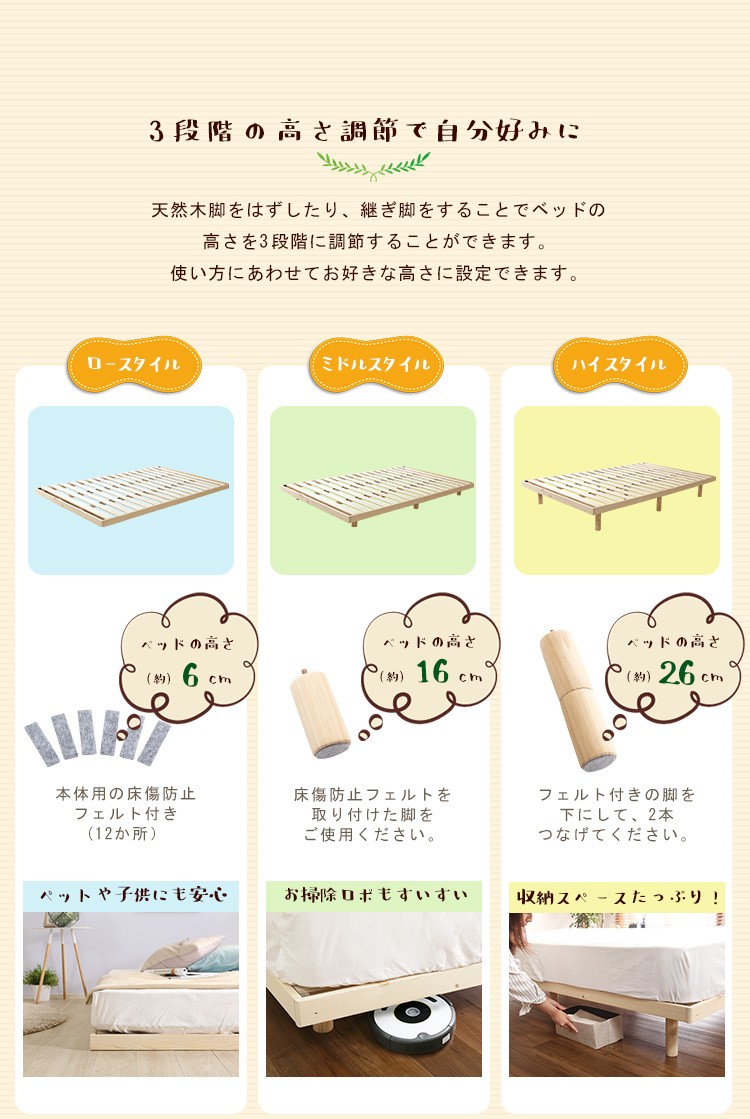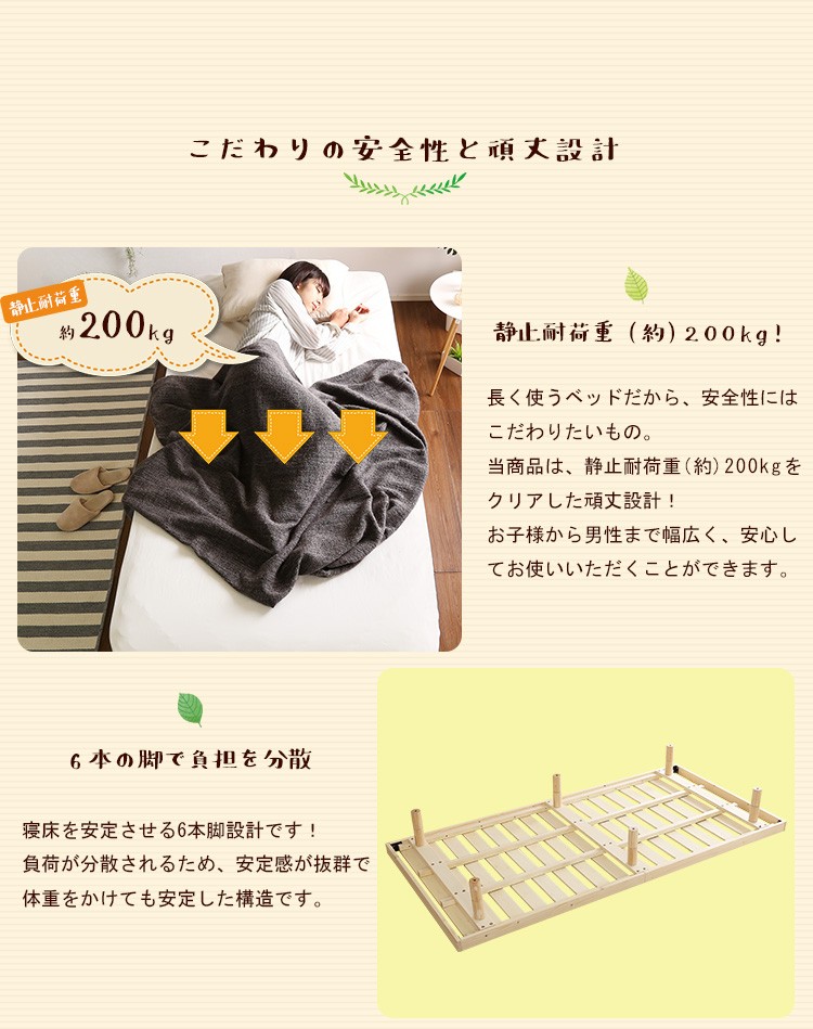 脚付きすのこベッド シングル パイン材ベッド 木製ベッド