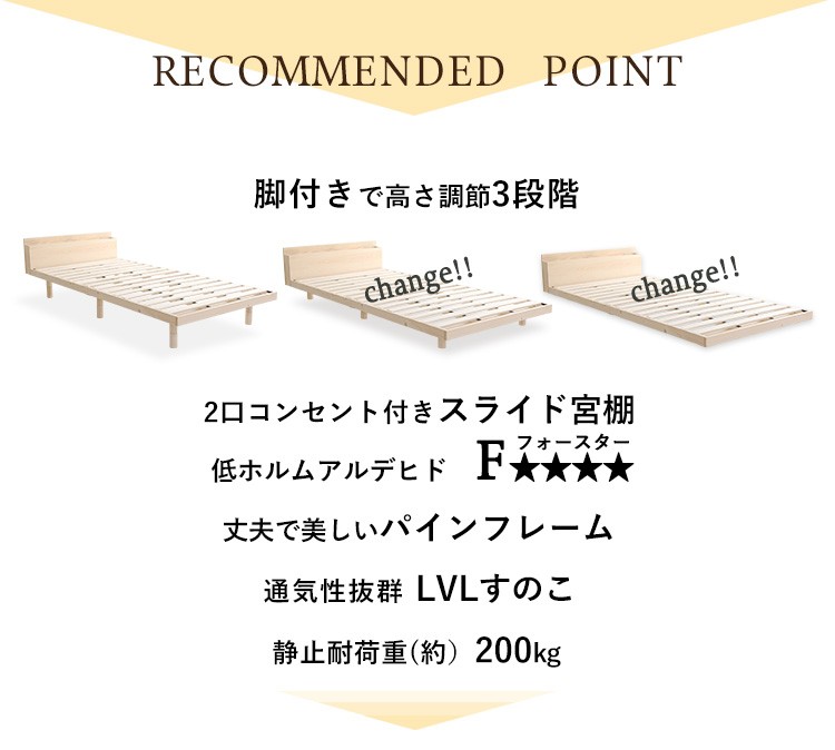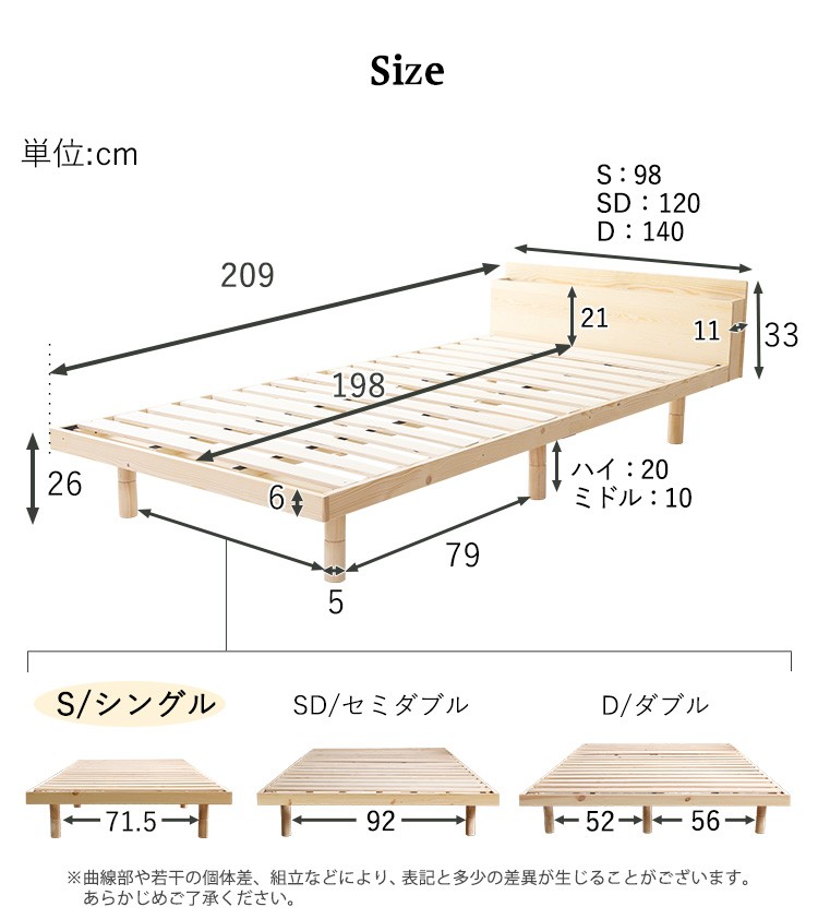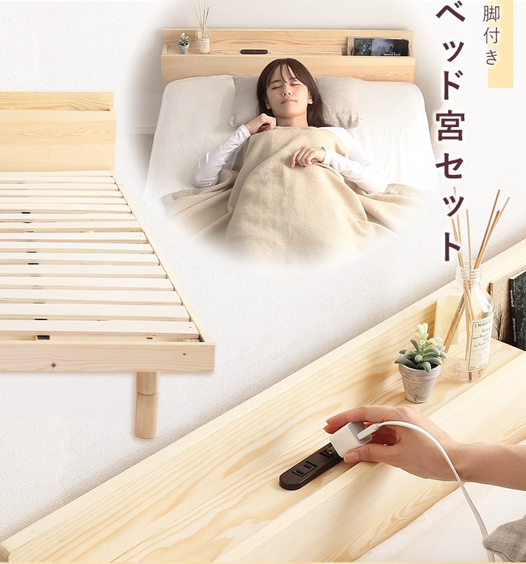 【宮セット】パイン材高さ3段階調整脚付きすのこベッド(シングル)