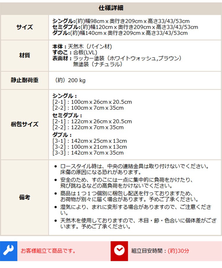 “【宮セット】パイン材高さ3段階調整脚付きすのこベッド(シングル)” の口コミを投稿します