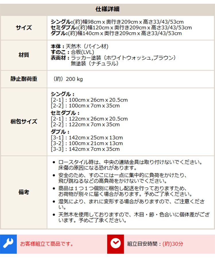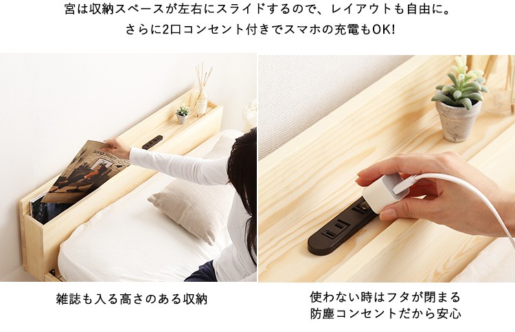 インテリア 寝具 収納 ベッド 宮棚 すのこベッド