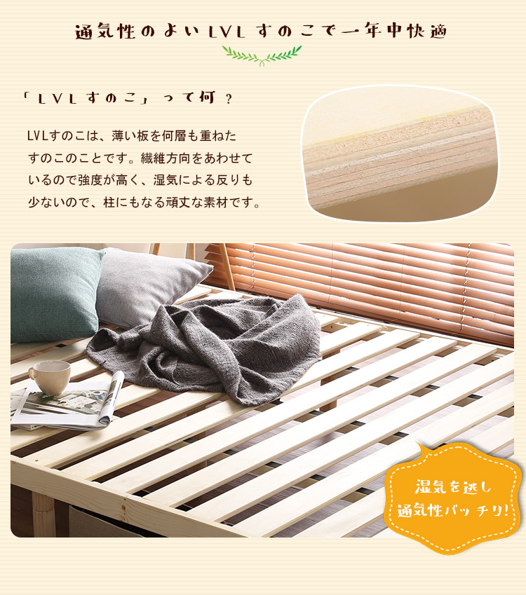 脚付きすのこベッド セミダブル 簡易宮 コンパクト