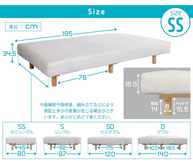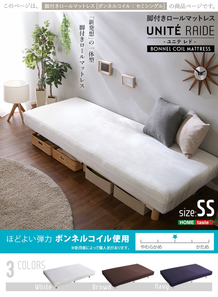 新発想で搬入も組立カンタン! ほどよい弾力 脚付きロールマットレス(ボンネルコイルスプリング)【Unite -Raide- -ユニテ・ライド-】セミシングルサイズ