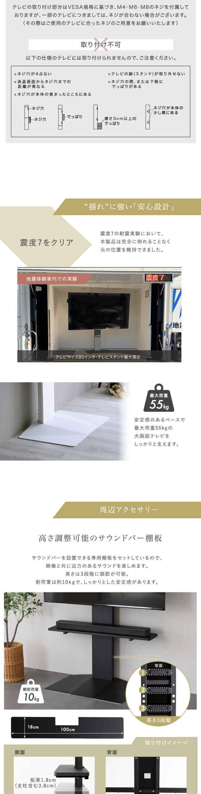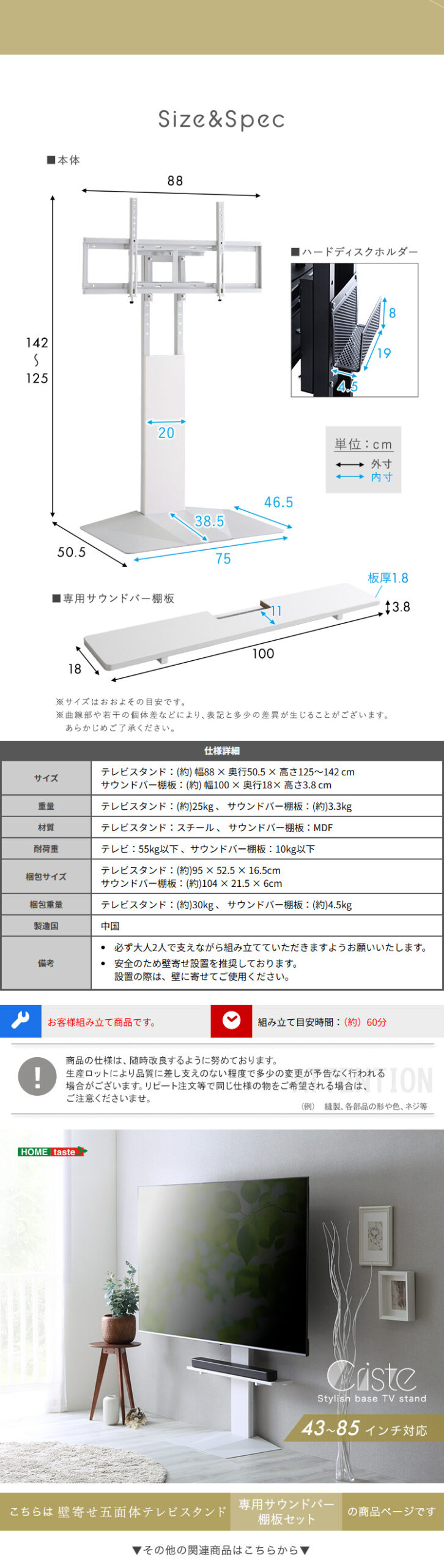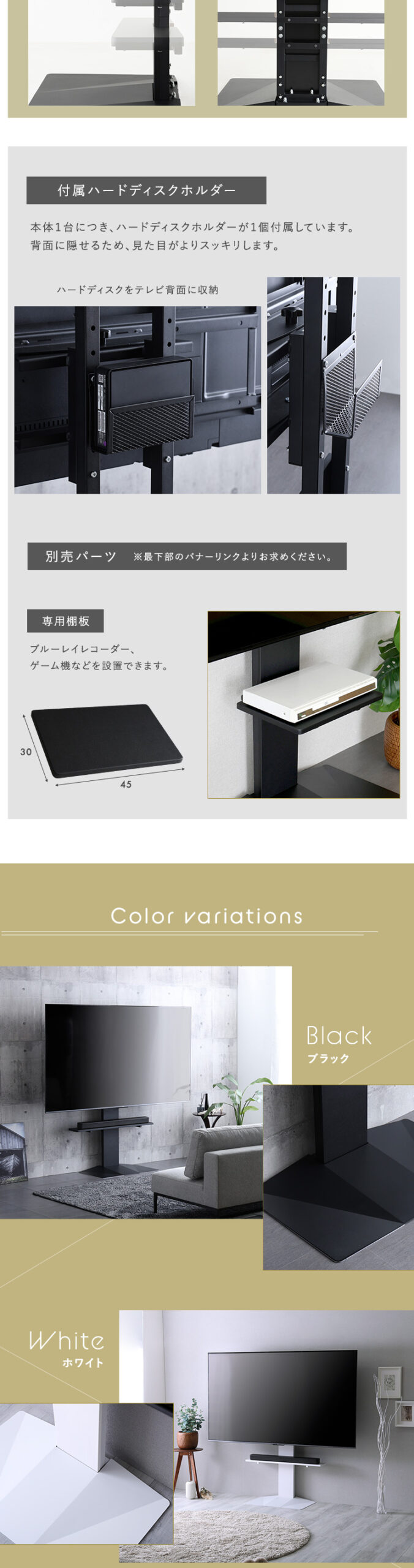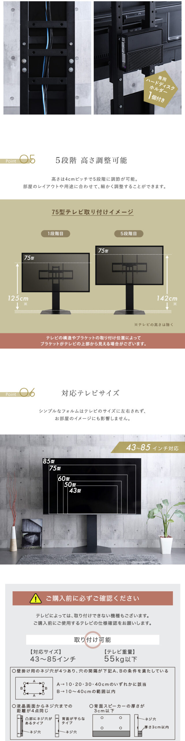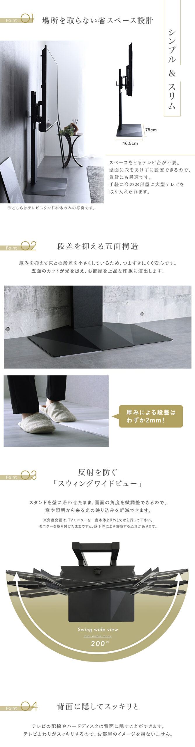 テレビスタンド 壁寄せ 左右スイング モダン シンプル