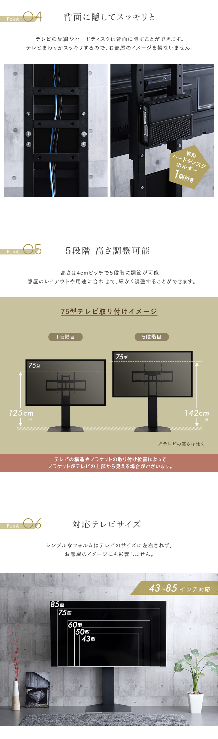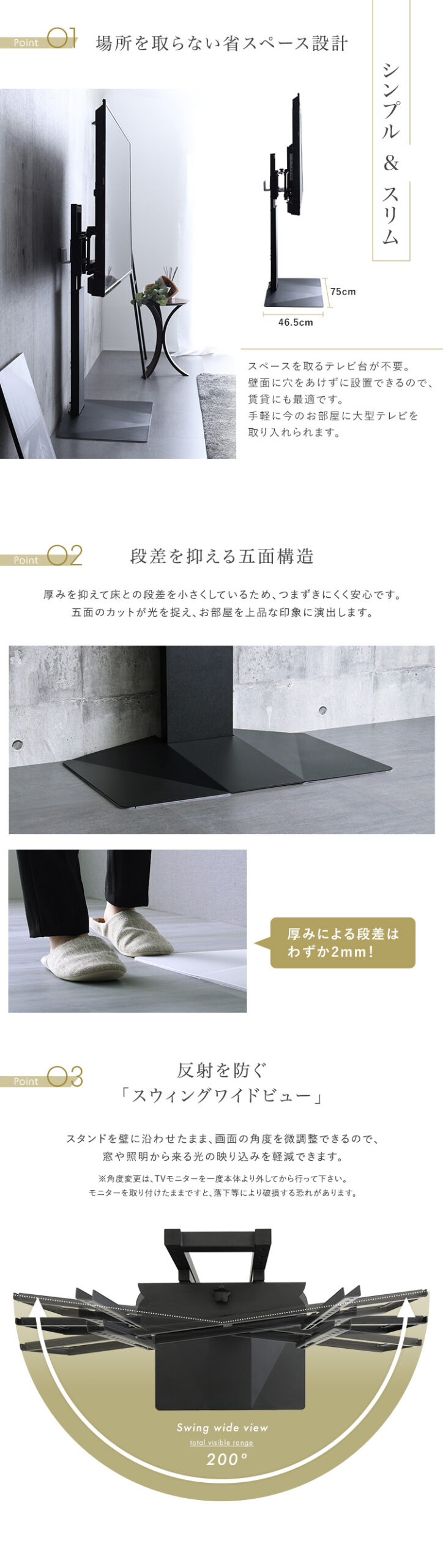 テレビスタンド 壁寄せ 左右スイング モダン シンプル