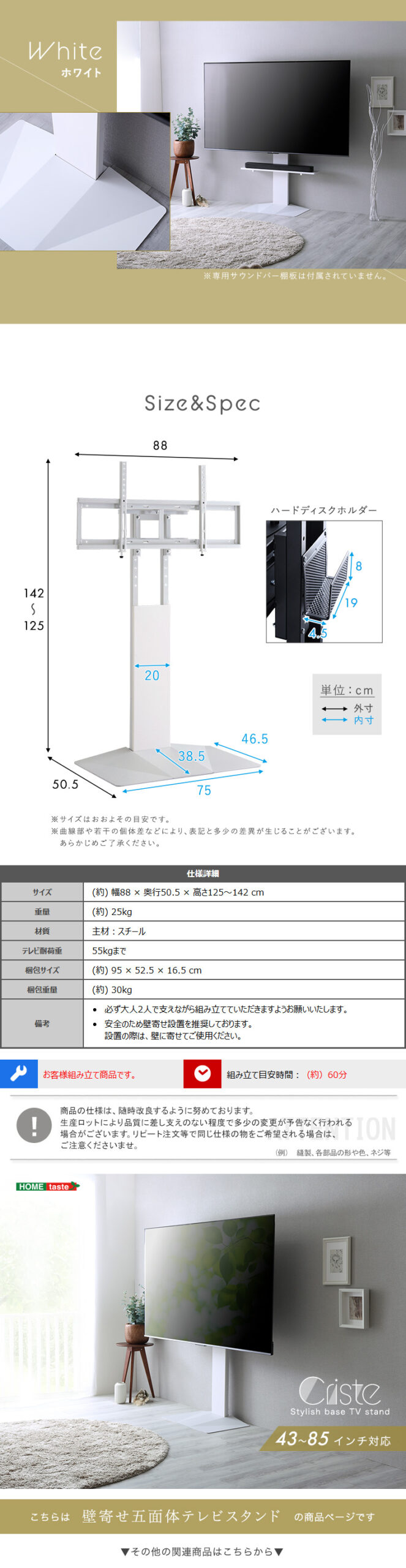 壁寄せ五面体テレビスタンド 【Criste-クリスト-】