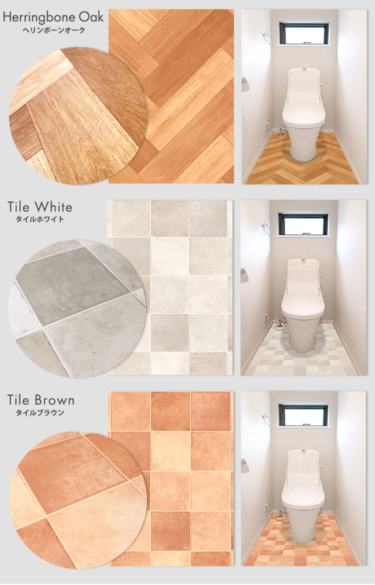 オーク, タイルブラウン, タイルホワイト, ヘリンボーンオーク, ホワイトオーク