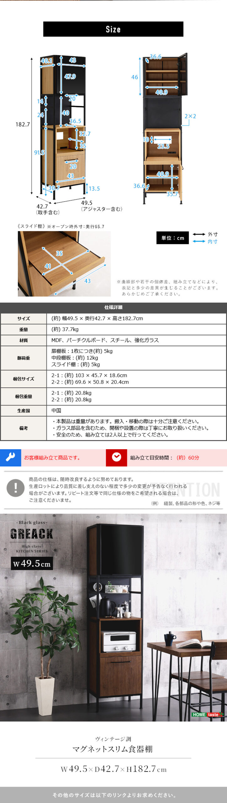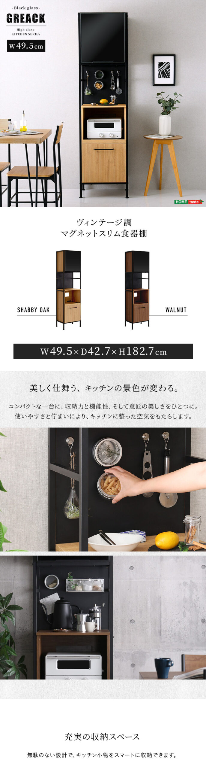 収納 ヴィンテージ食器棚 キッチン収納 食器棚 スリム