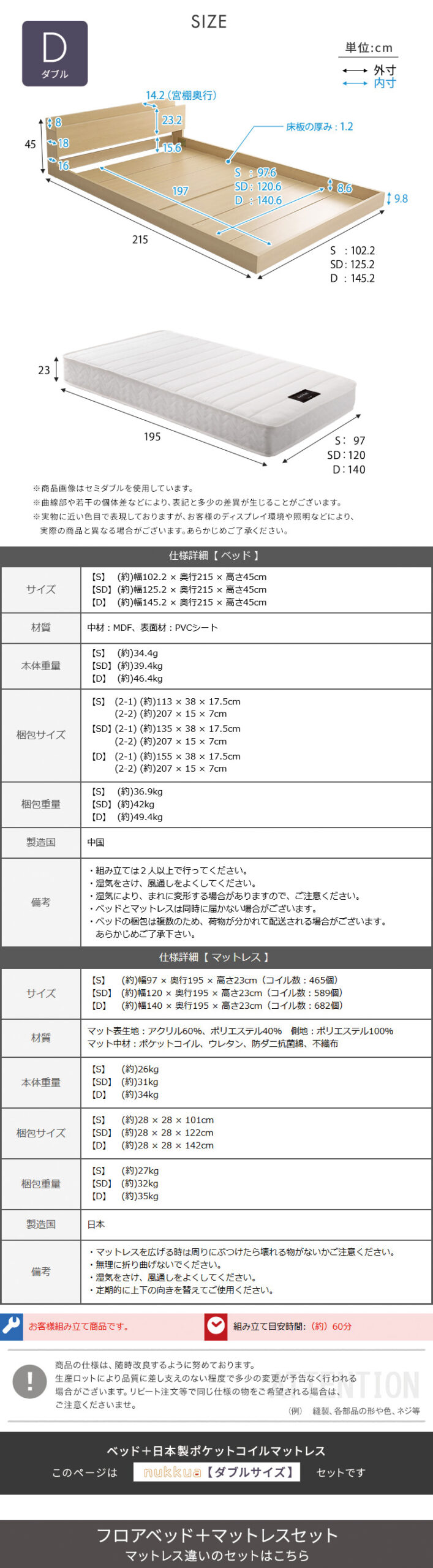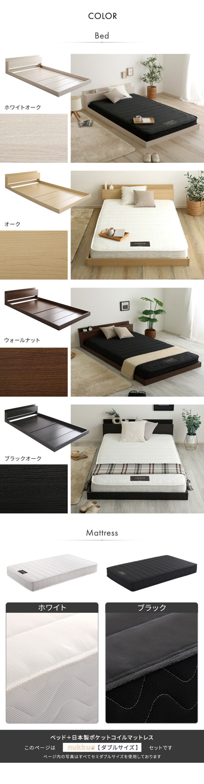 デザインフロアベッド 日本製ポケットコイルマットレスセット(ダブル)