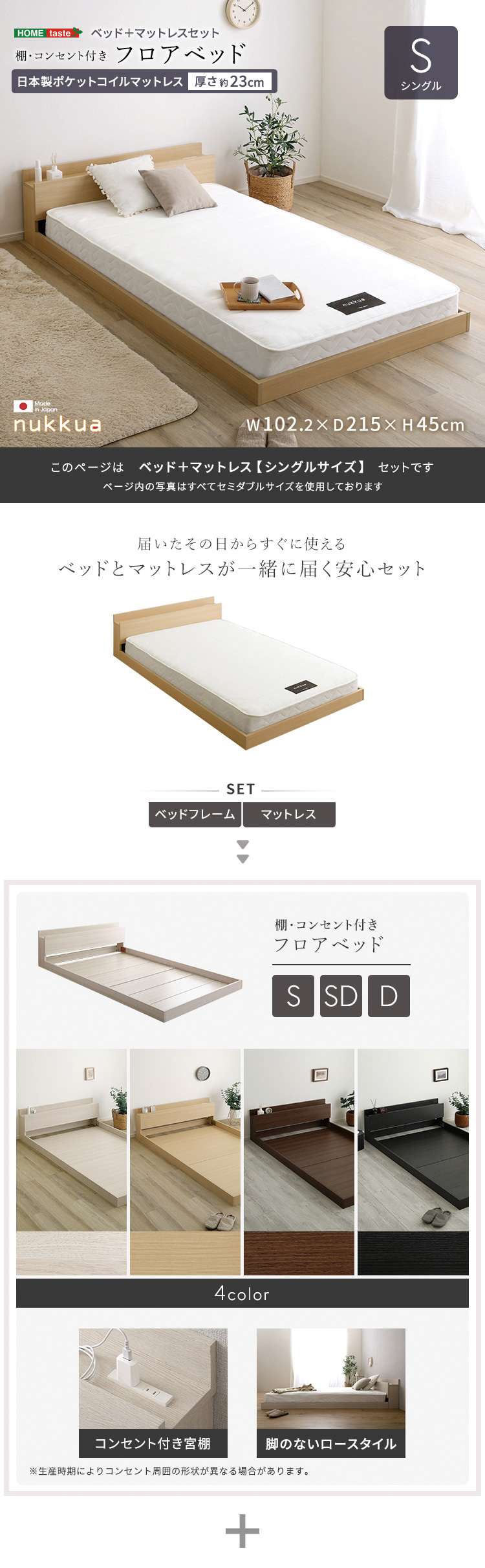 デザインフロアベッド 日本製ポケットコイルマットレスセット(シングル)