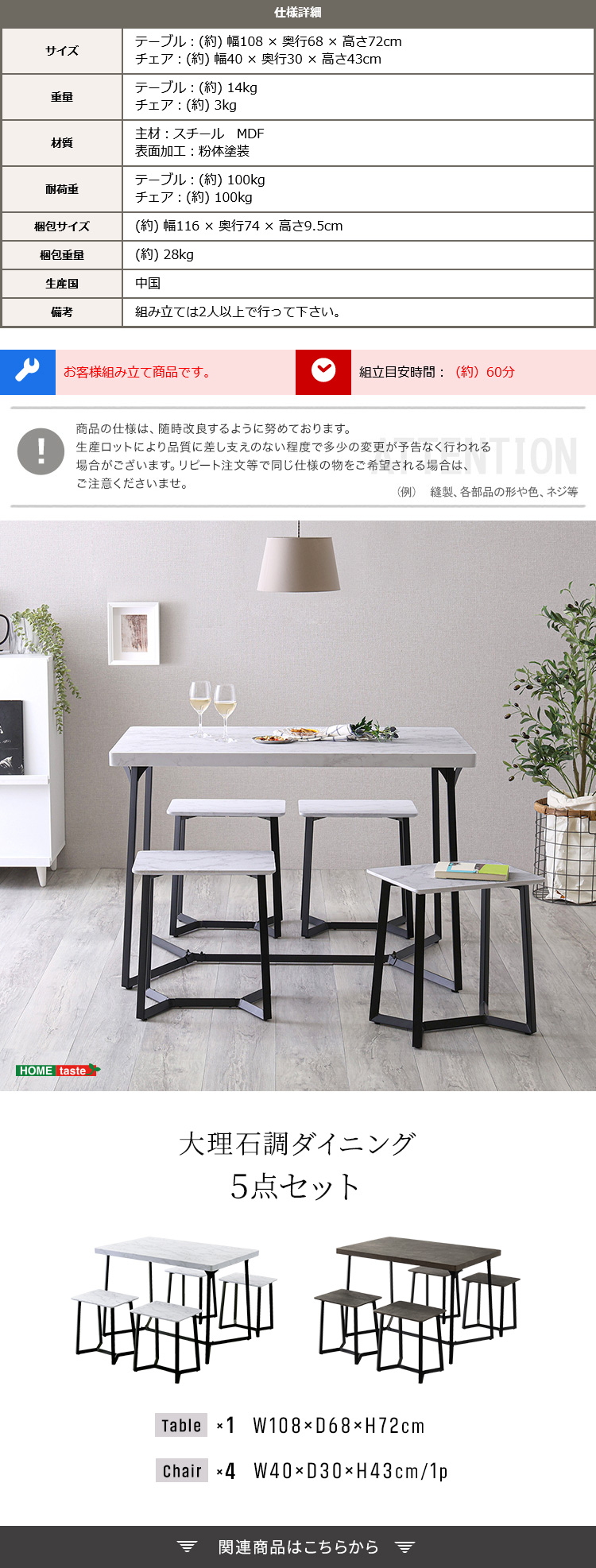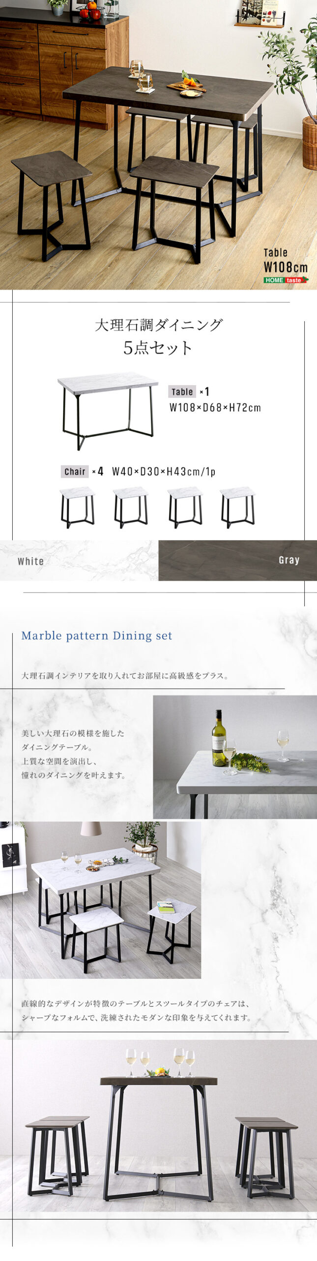 “大理石調ダイニング5点セット” の口コミを投稿します