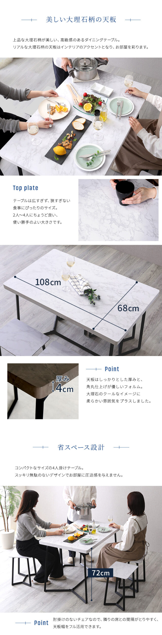 大理石調ダイニング チェア テーブル 4人掛け