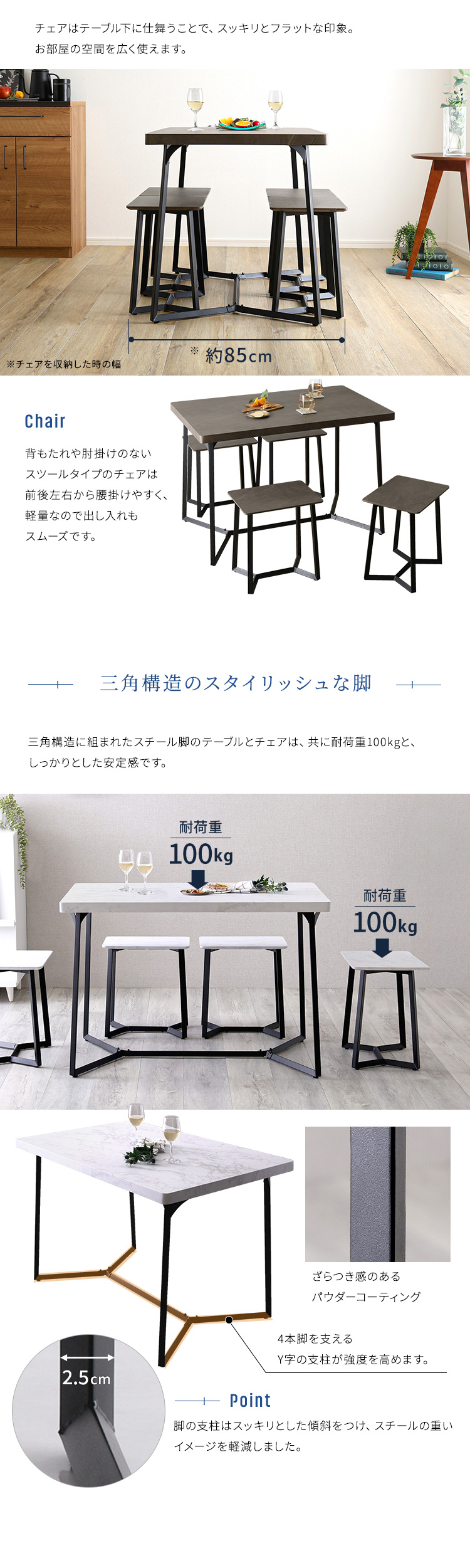 大理石調ダイニング5点セット