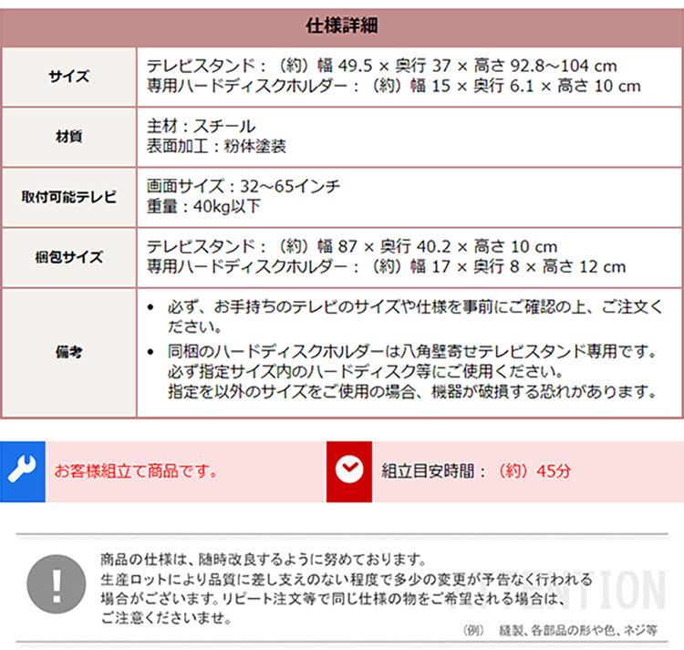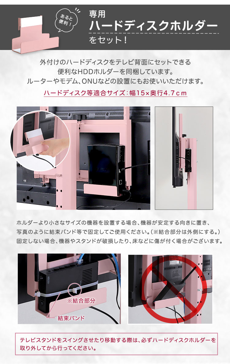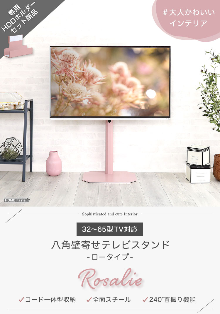 大人かわいいインテリア 八角テレビスタンドロータイプ専用 ハードディスクホルダーセット 【Rosalie -ロザリー-】
