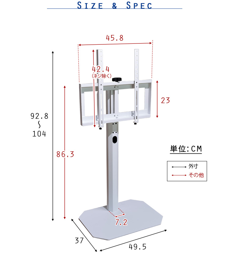 八角スタンド 壁寄せテレビスタンド スイング 高さ調整