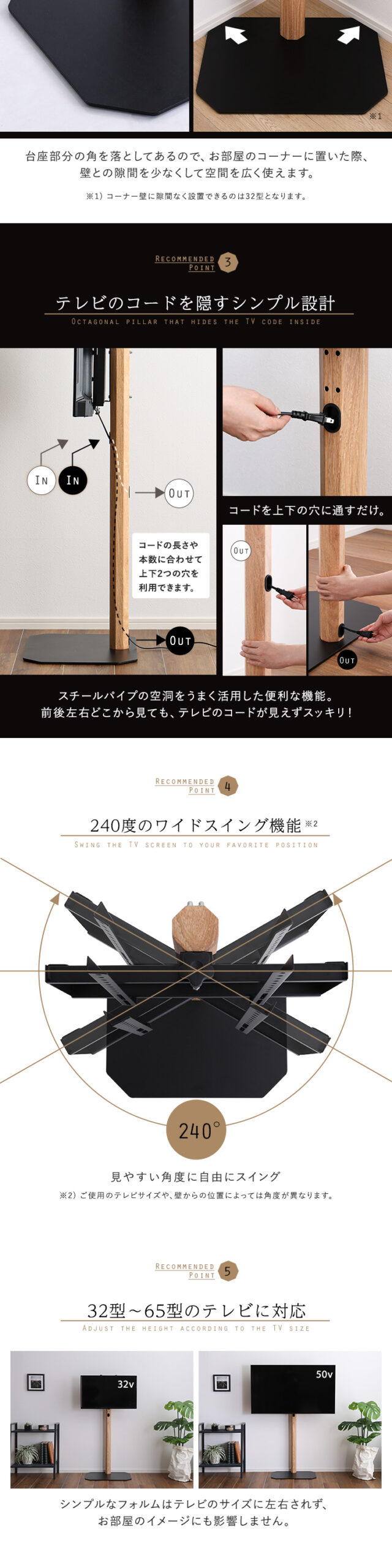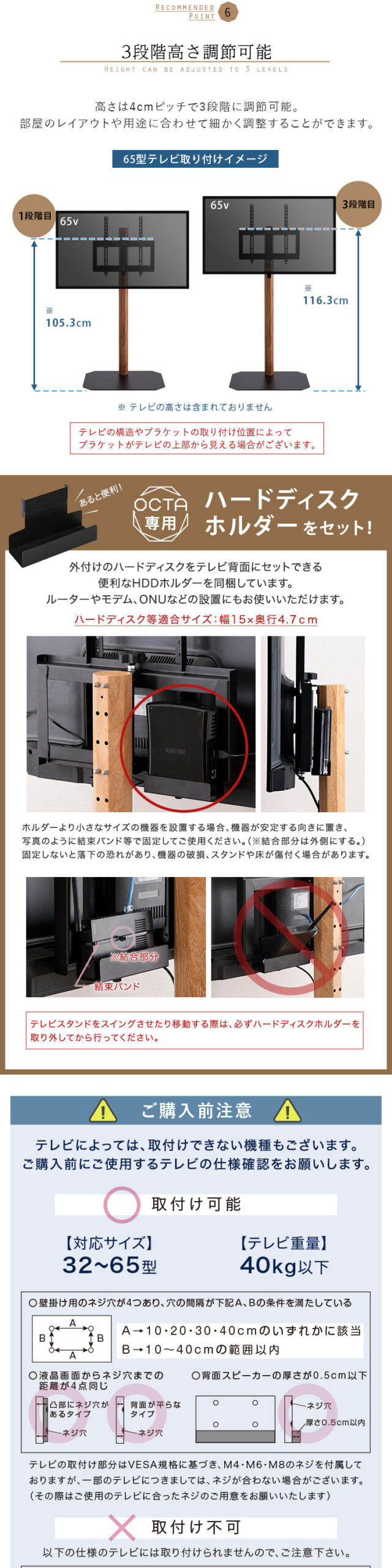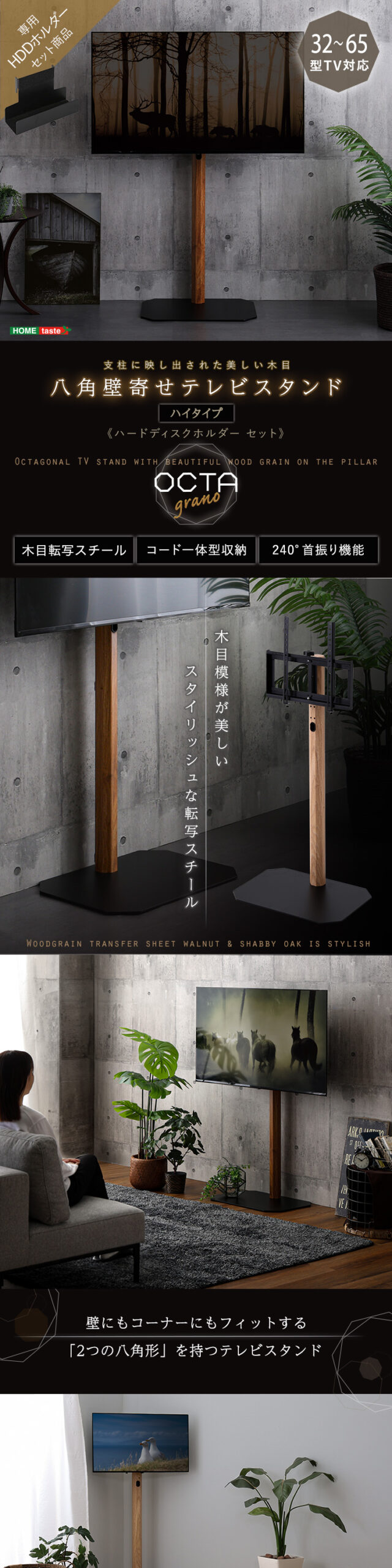 八角テレビスタンド 木目転写 ハイタイプ HDDホルダーセット