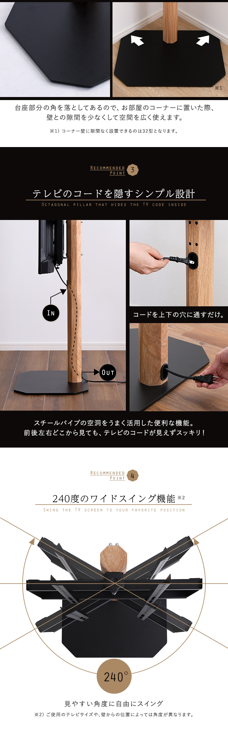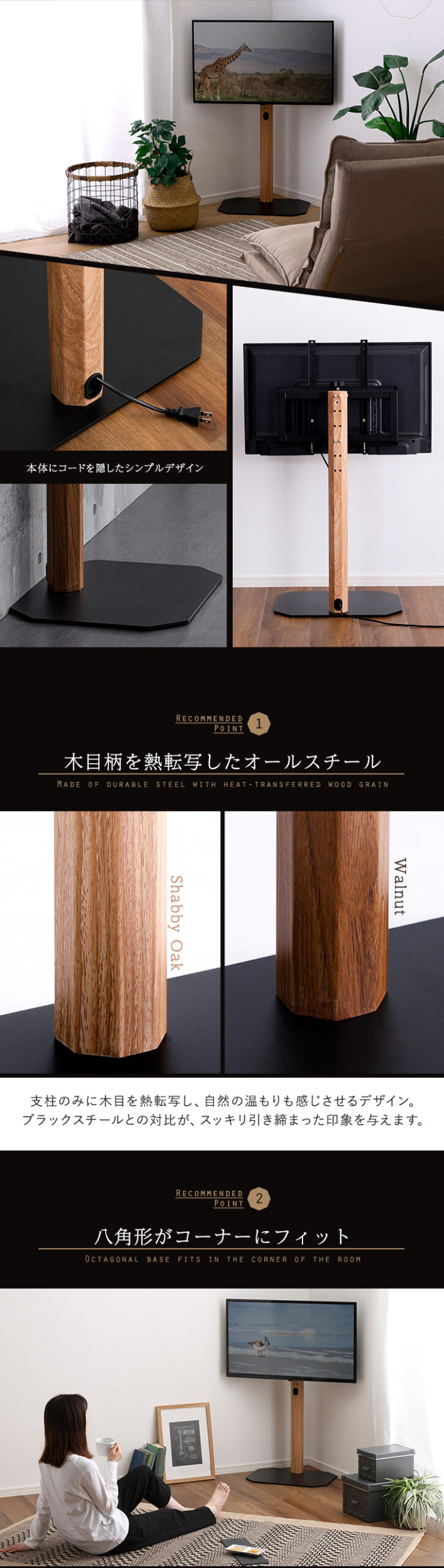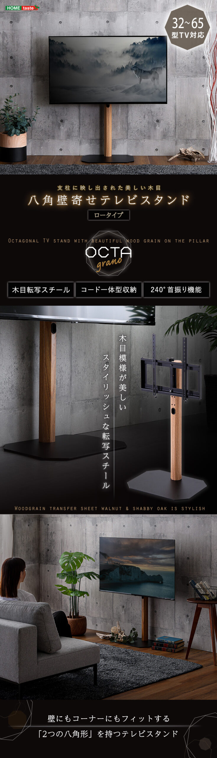 ヴィンテージ 八角テレビスタンド 木目転写 ロータイプ スイング