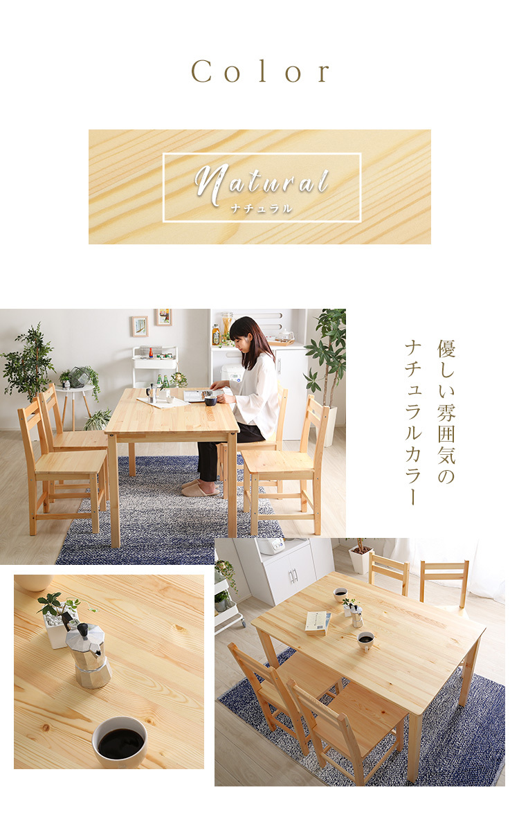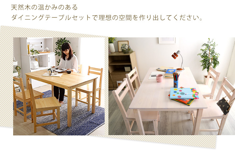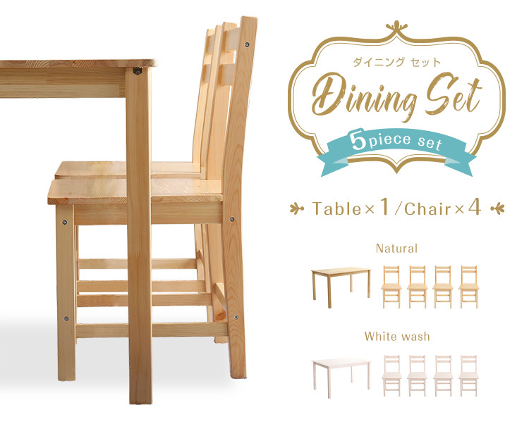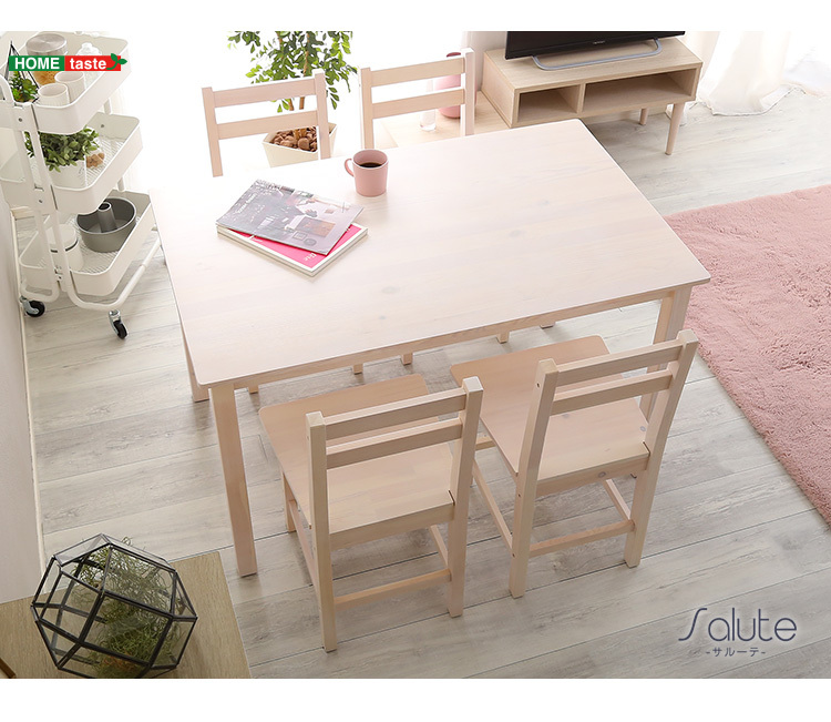 北欧テイスト ダイニング5点セット 天然木製 【Salute-サルーテ】