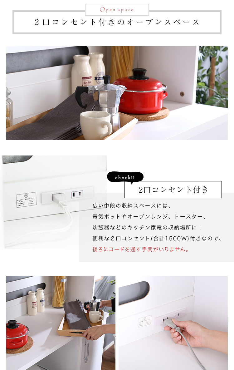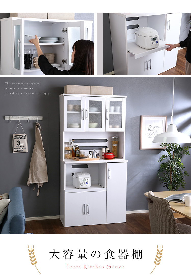 キッチン収納 食器棚 ホワイトカラー 白色 レンジ台