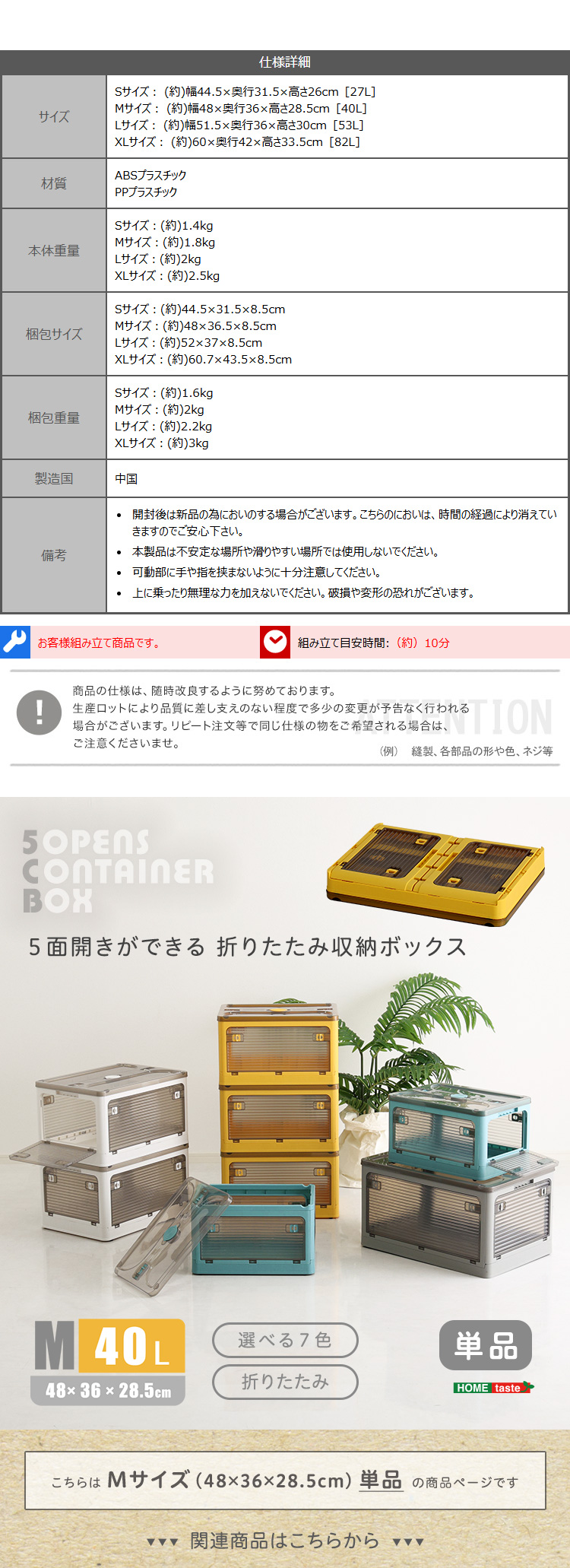 収納 折りたたみ 5面開き コンテナ おしゃれ 収納ケース