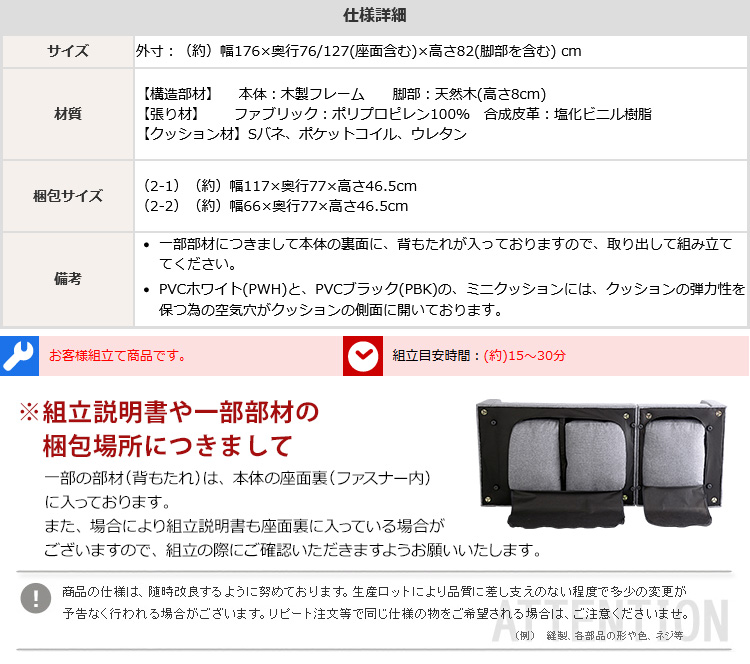 ローソファ ポケットコイル 2人掛け 3人掛け