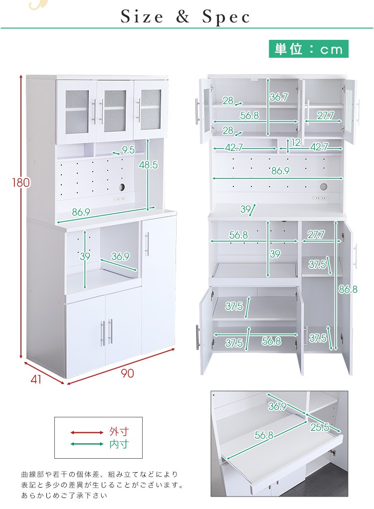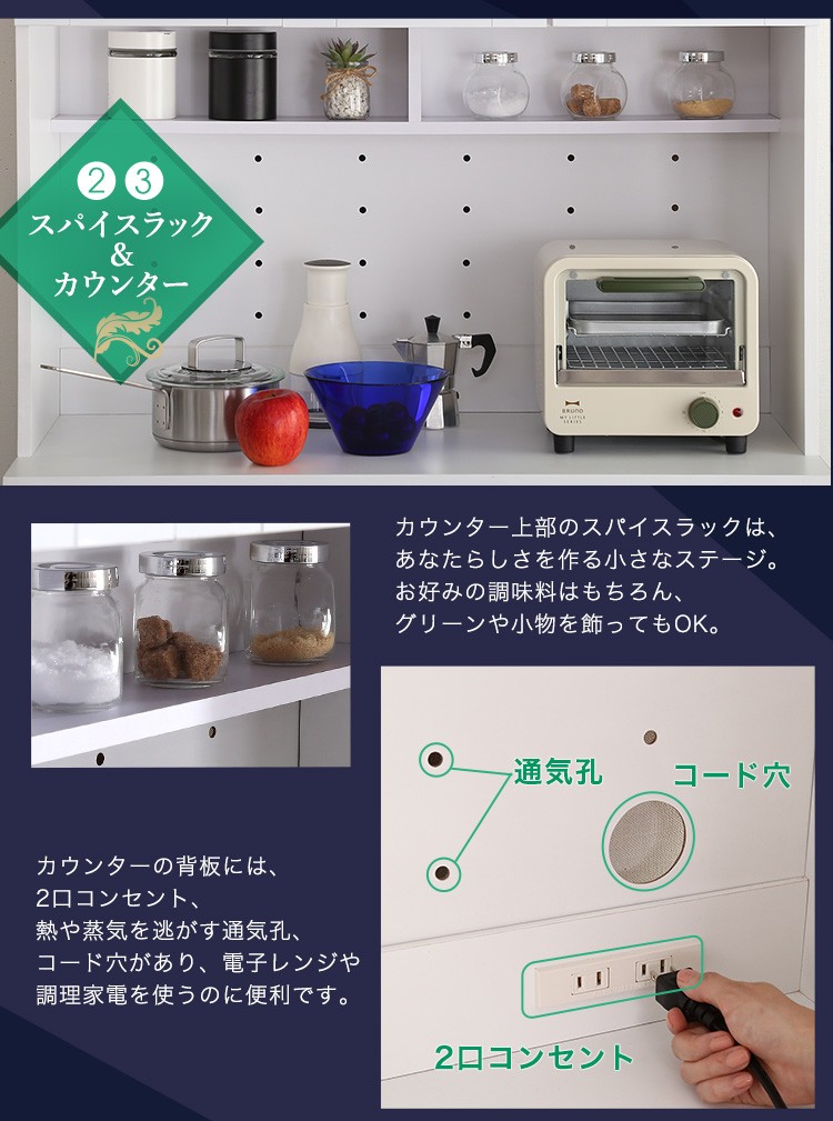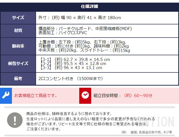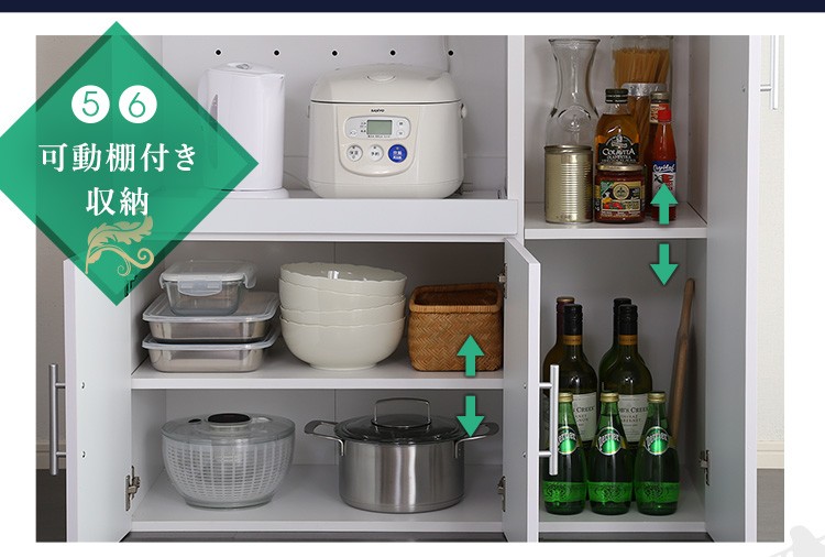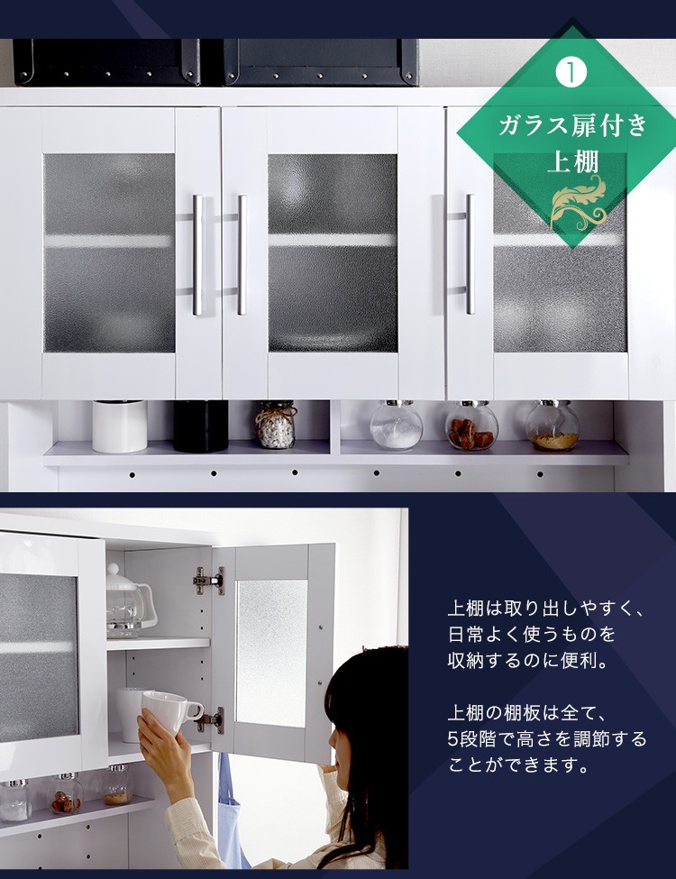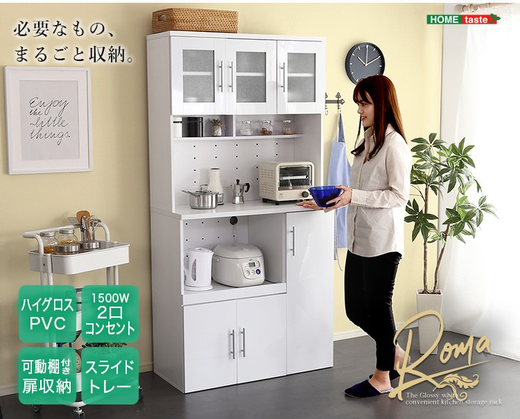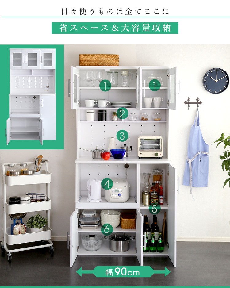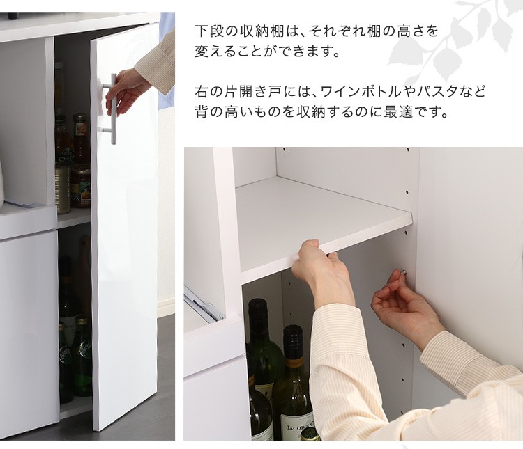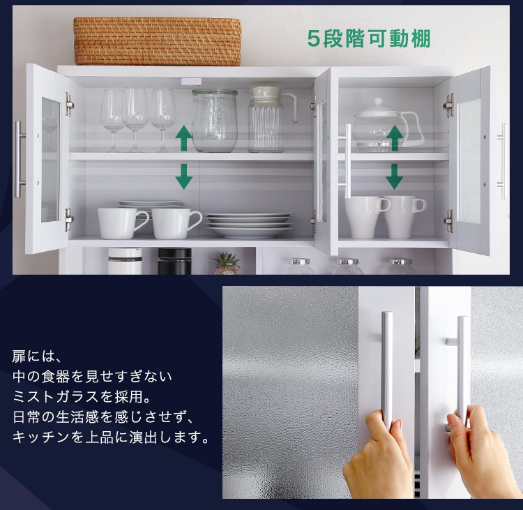 キッチン収納 食器棚 キッチンボード 鏡面 幅90cm