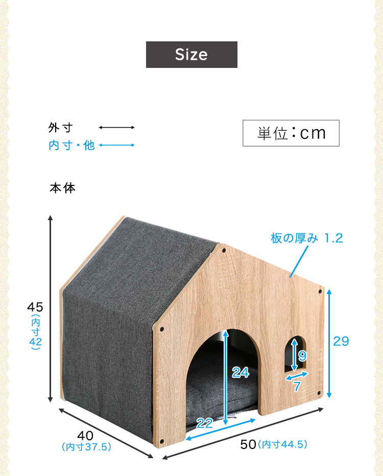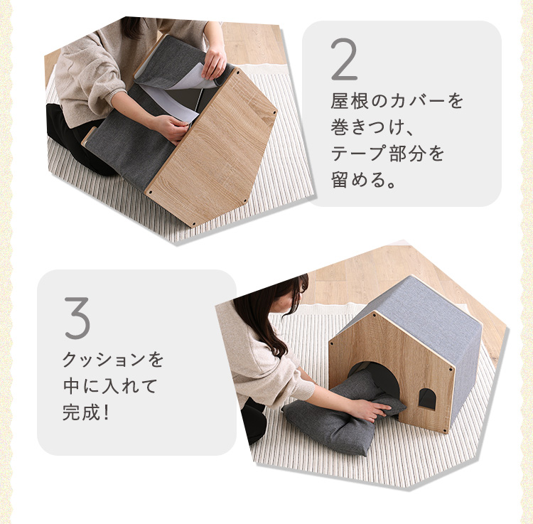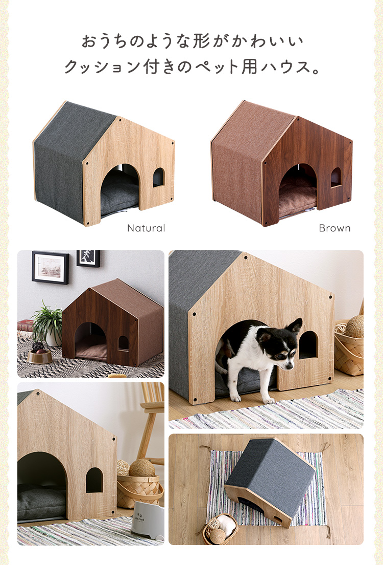ペットハウス 木製 クッション 屋根