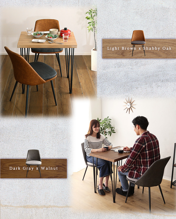 ダイニングテーブルセット 2人掛け スチール脚 オシャレ