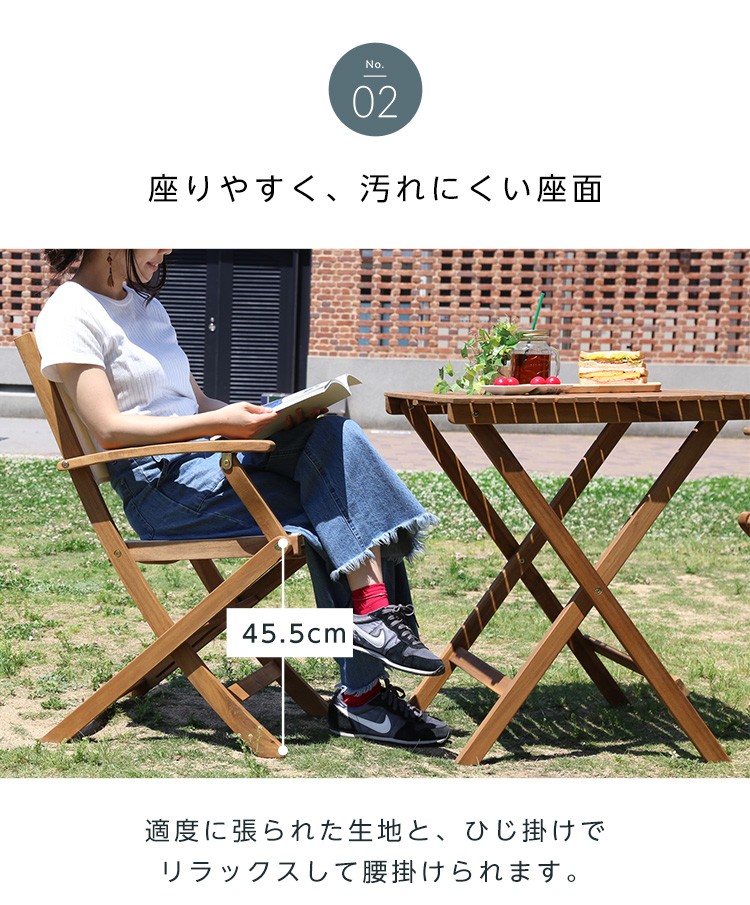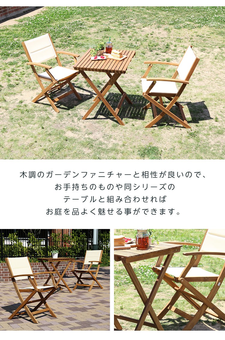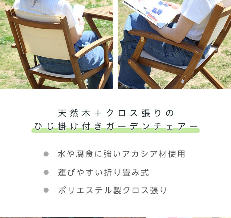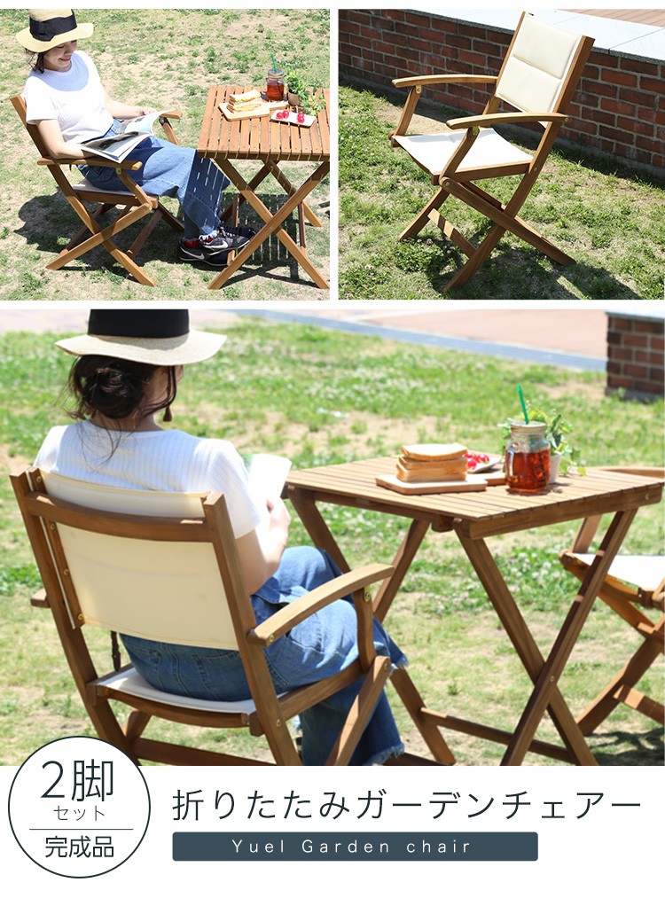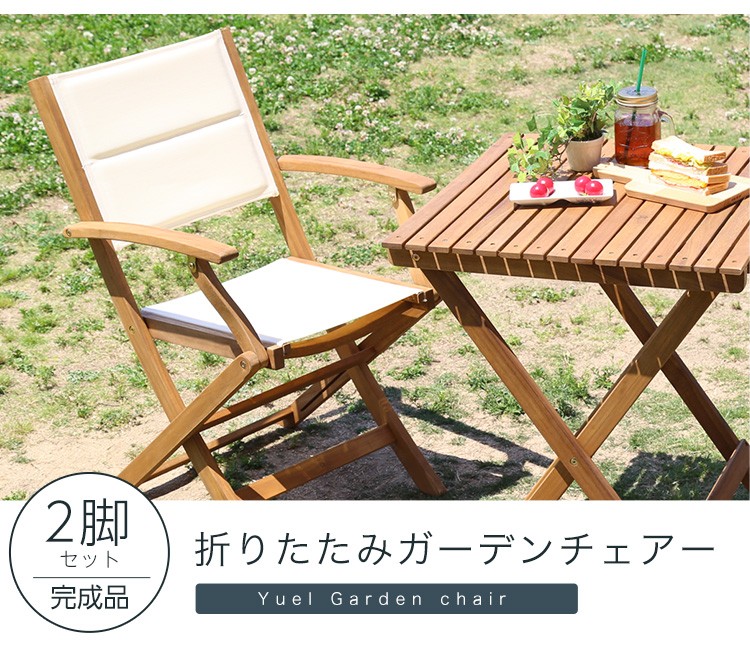 人気の折りたたみガーデンチェア肘付き(2脚セット)アカシア材を使用 | Yuel-ユエル-