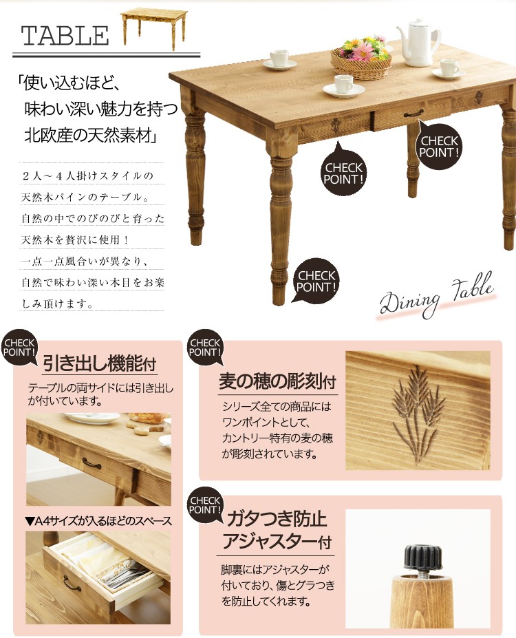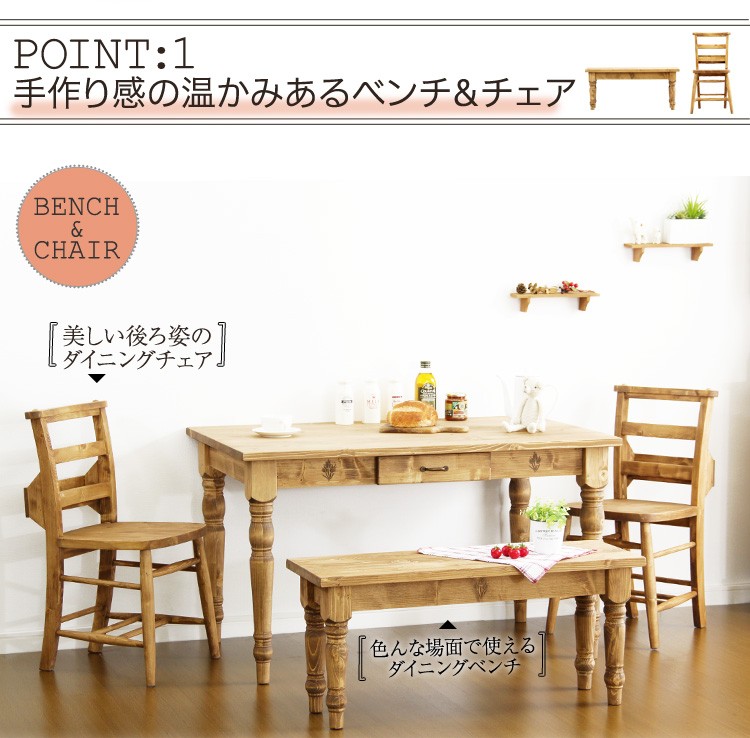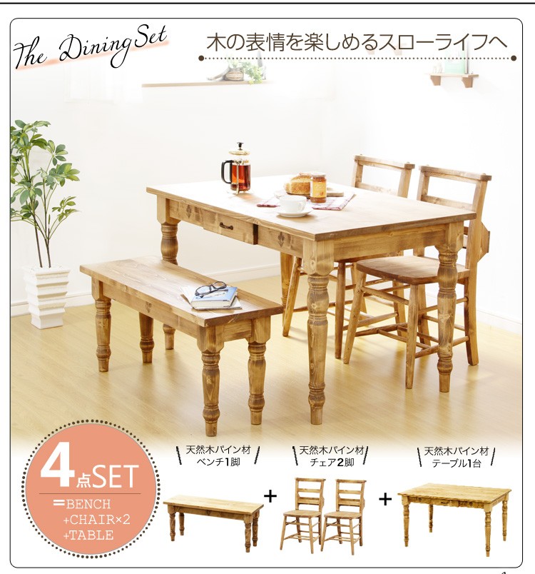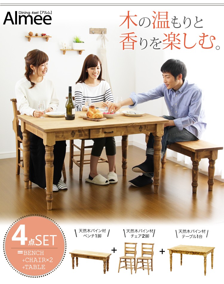 カントリーダイニングセット【Almee-アルム-】4点セット