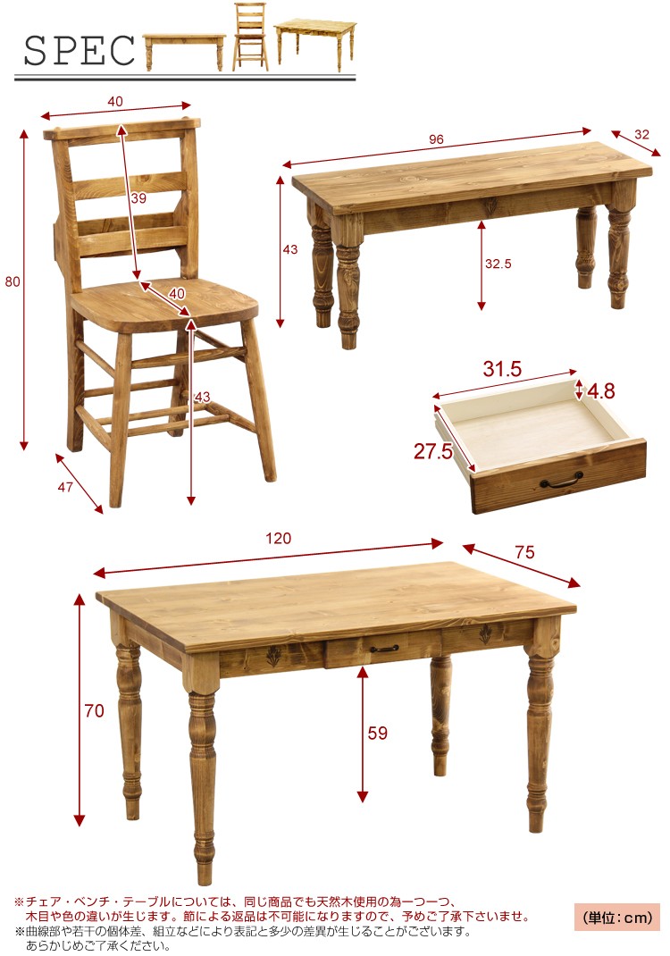 “カントリーダイニングセット【Almee-アルム-】4点セット” の口コミを投稿します