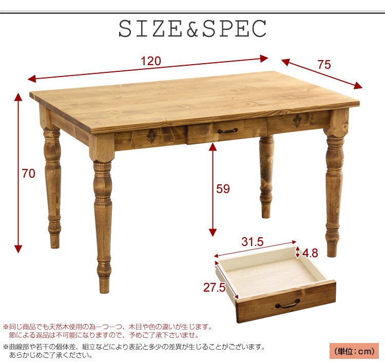 “カントリーダイニング【Almee-アルム-】ダイニングテーブル単品(幅120cm)” の口コミを投稿します
