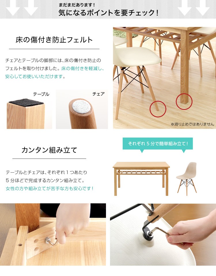 ダイニング 5点 食卓 木製 イームズ風 ナチュラル