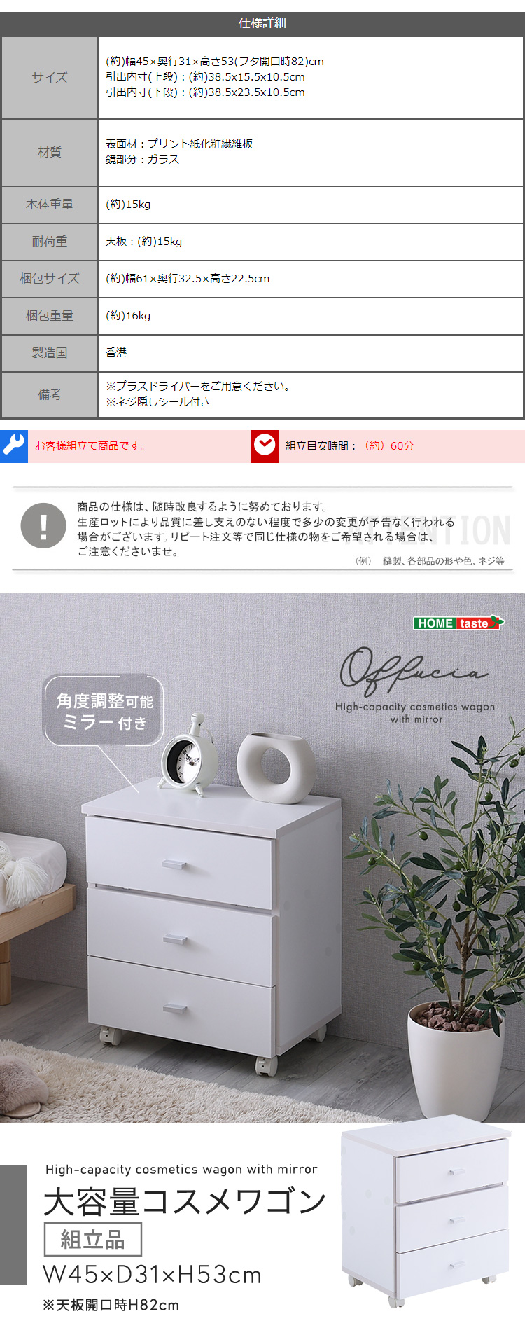 【offucia】オフーキア 大容量コスメワゴン(組立品)
