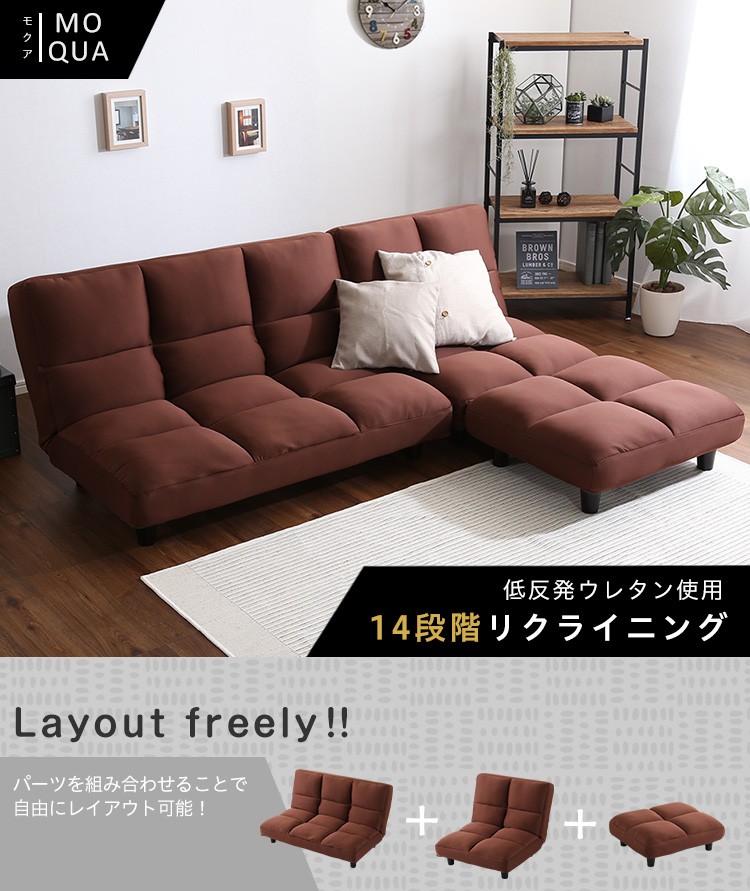 低反発14段階リクライニングソファ、レイアウト自由でローソファにも | Moqua-モクア-