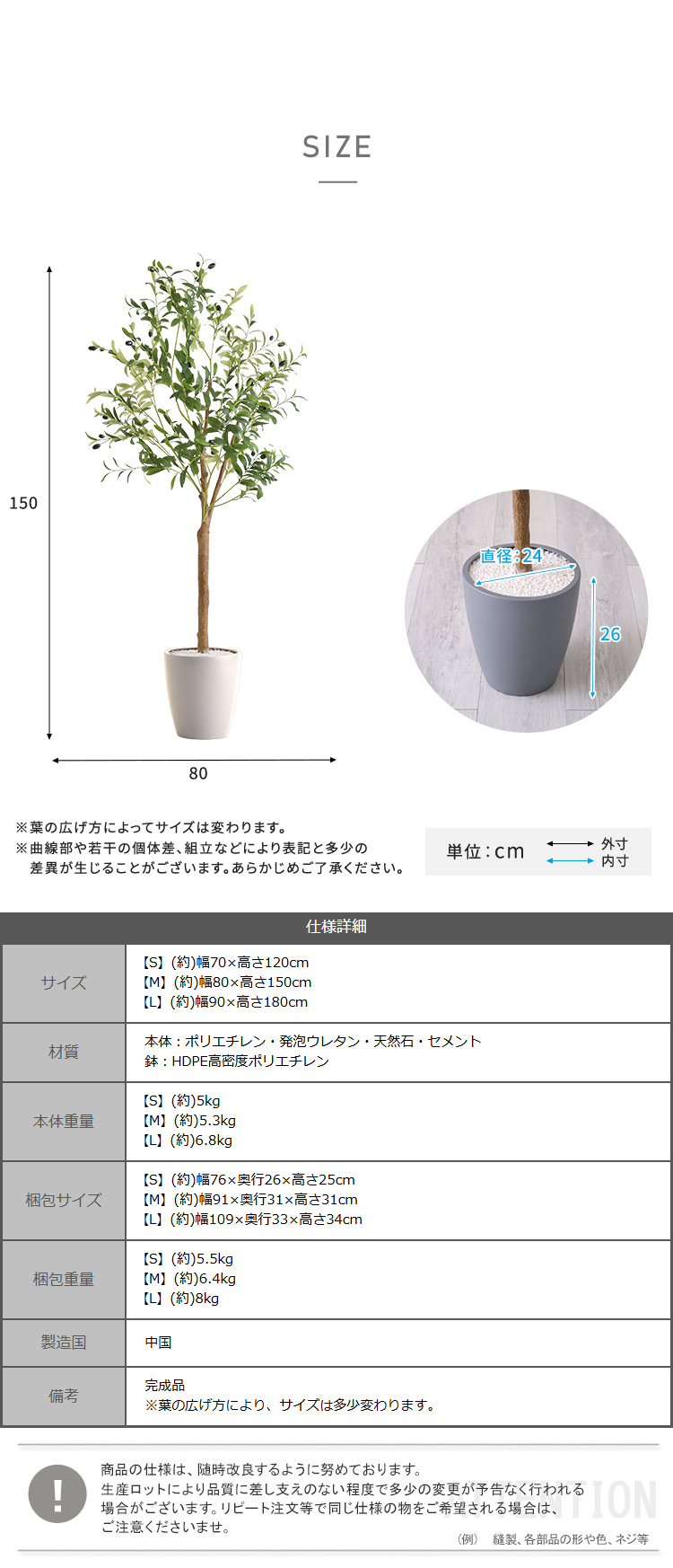 お手入れ簡単フェイクグリーン オリーブ Mサイズ(150cm)