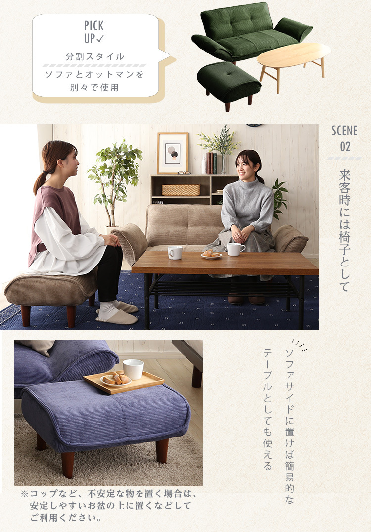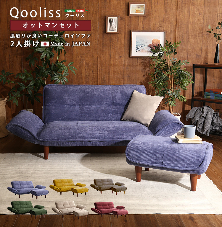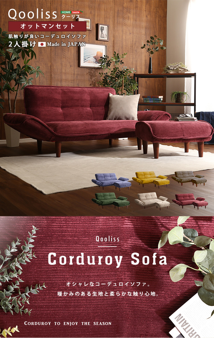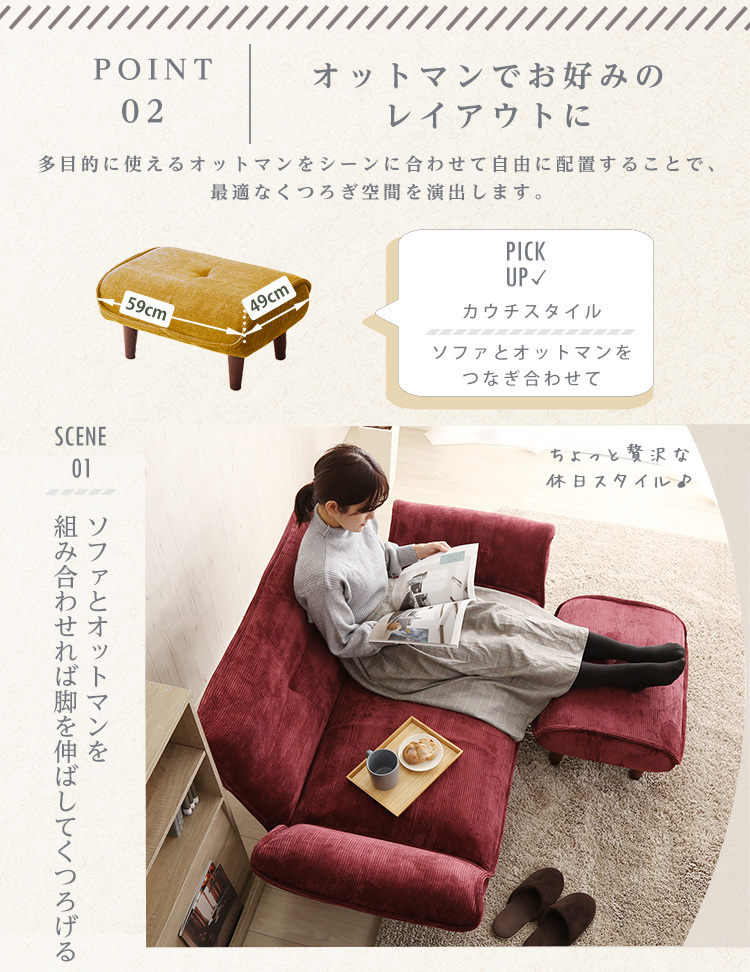 コーデュロイソファ 1人掛け コンパクトソファ オットマン