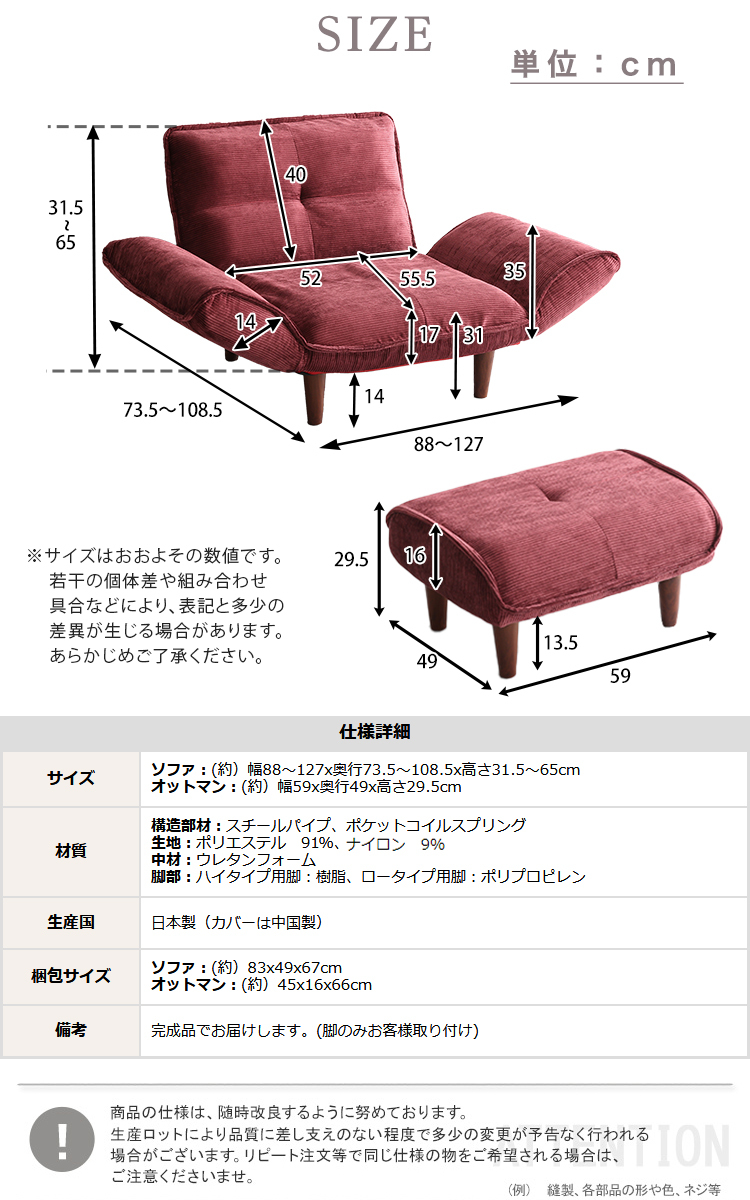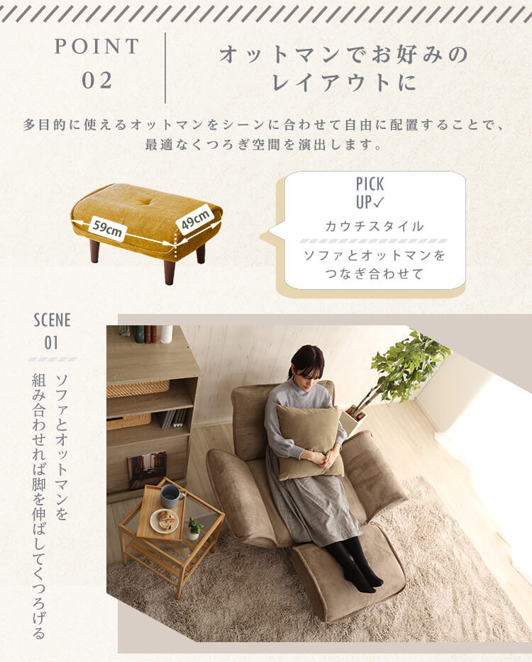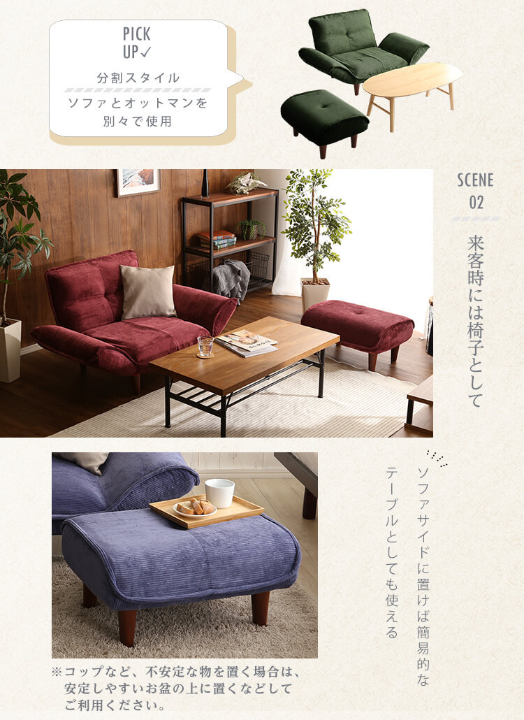 コーデュロイソファ 1人掛け オットマンセット おしゃれ