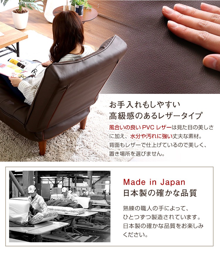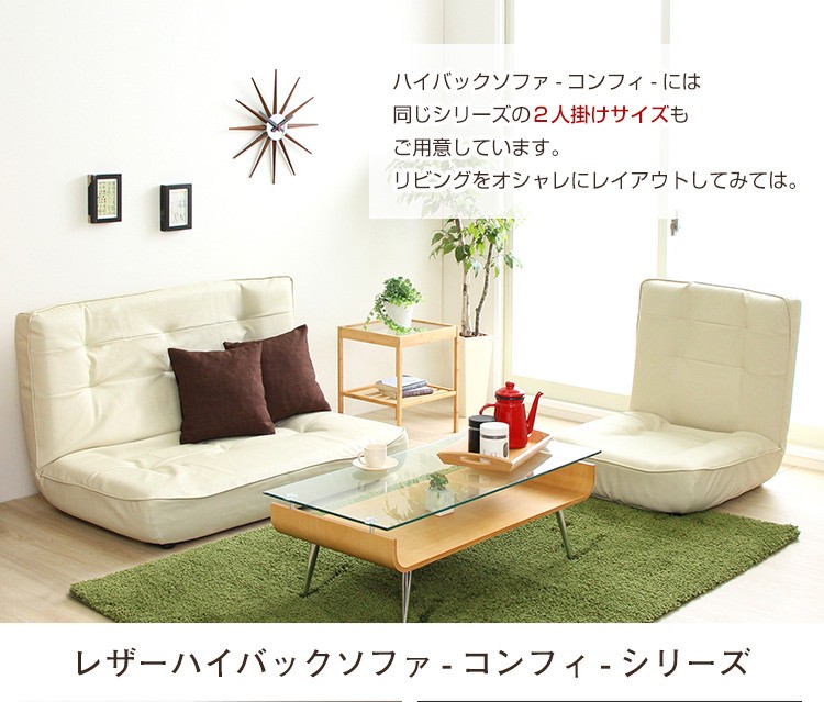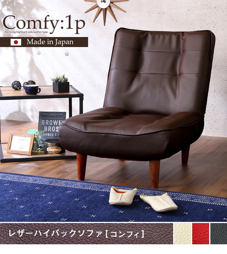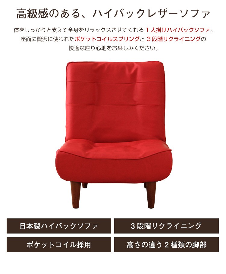 1人掛ハイバックソファ(PVCレザー)ローソファにも、ポケットコイル使用、3段階リクライニング 日本製|Comfy-コンフィ-