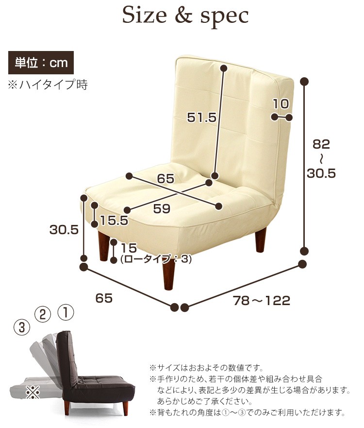 “1人掛ハイバックソファ(PVCレザー)ローソファにも、ポケットコイル使用、3段階リクライニング 日本製|Comfy-コンフィ-” の口コミを投稿します